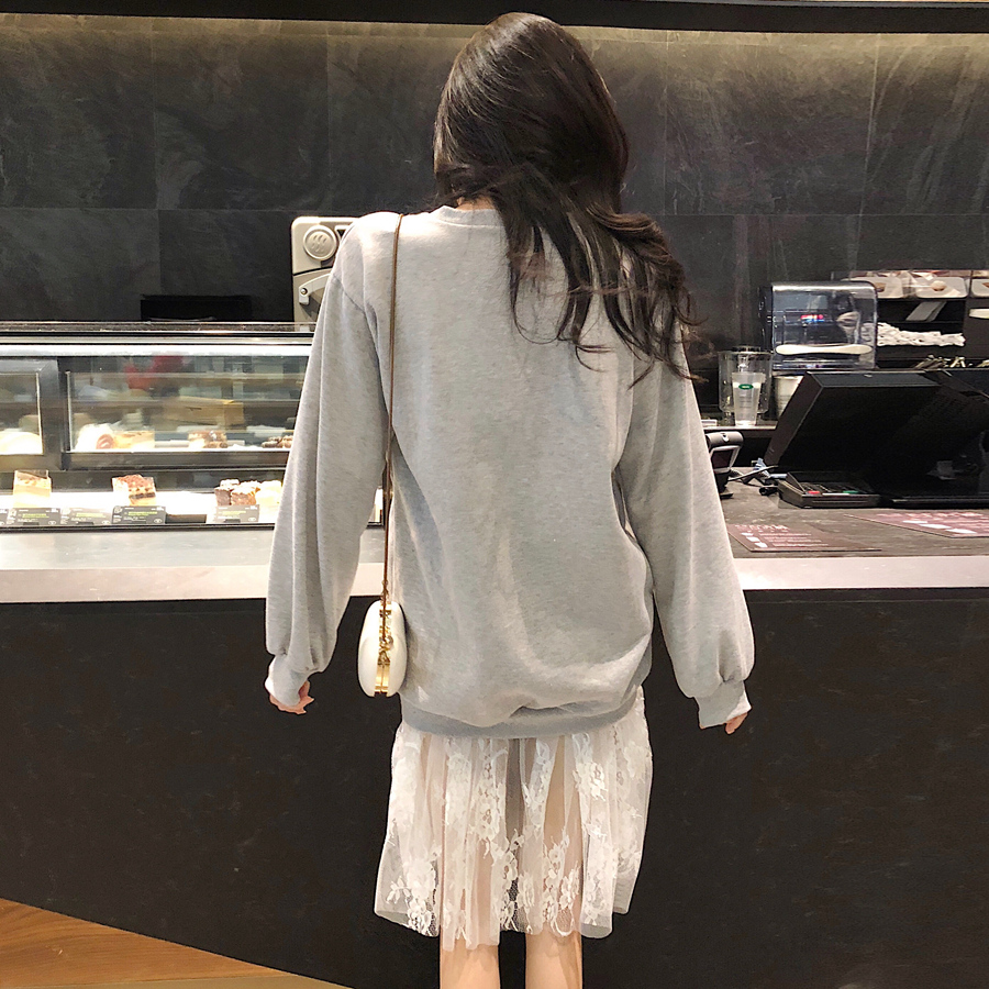 港味加絨抽繩衛衣拼接蕾絲裙擺