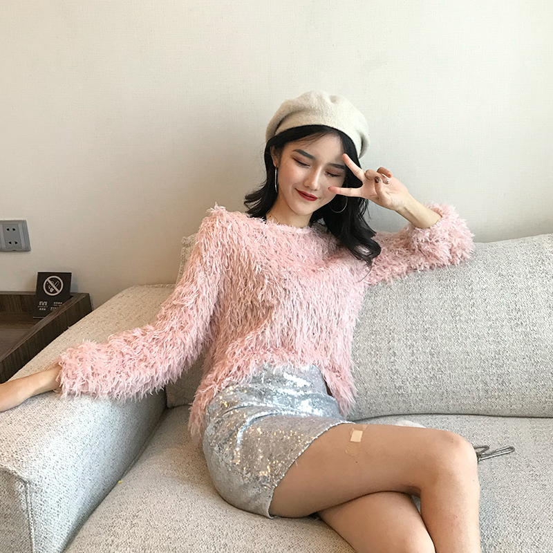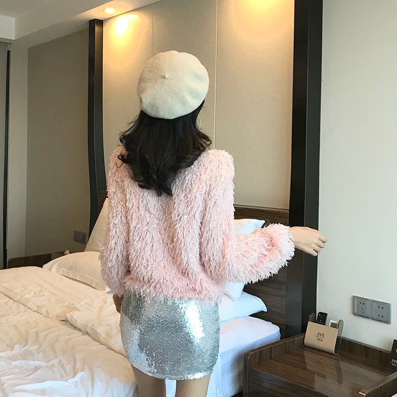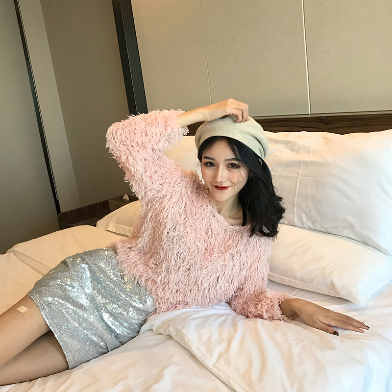 / 港風新款時尚套裝長袖流蘇邊圓領毛衣高腰亮片包臀短裙chic兩件套