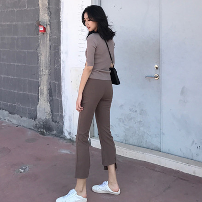 褲腳邊的不規則裁剪增添一絲活潑靈動感,露出顯瘦的腳踝,洋氣加分