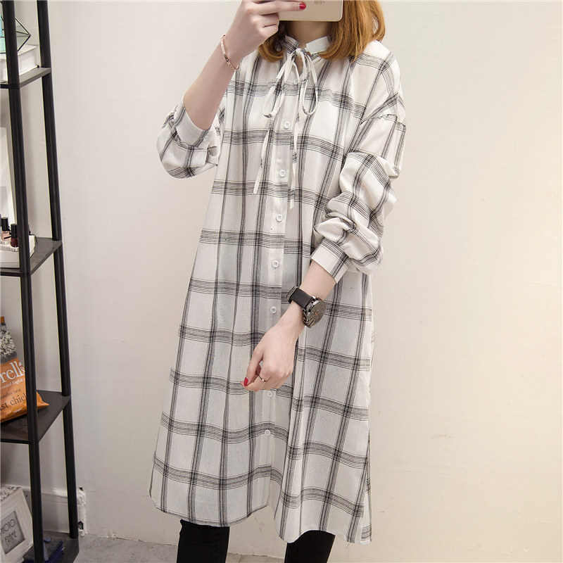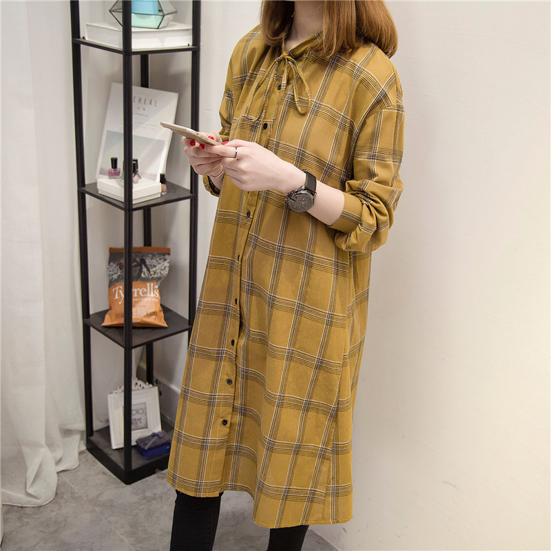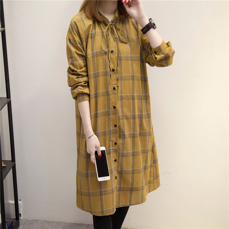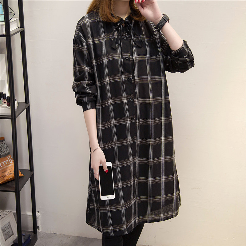格子襯衣女長袖春裝新款寬松中長款韓版女裝學生百搭上衣外套