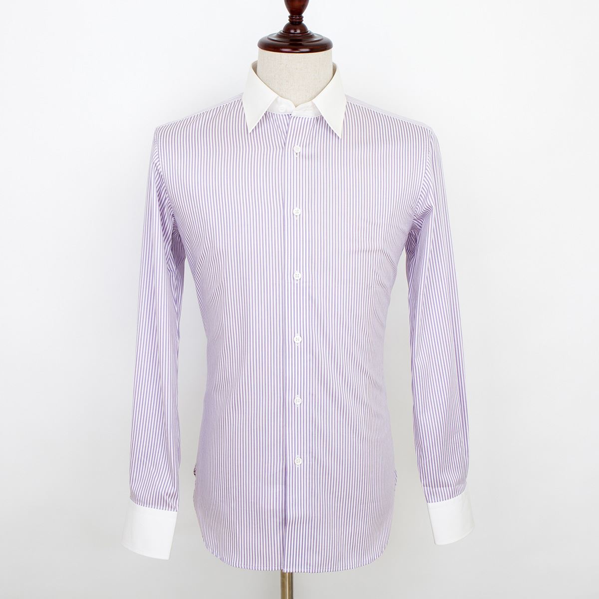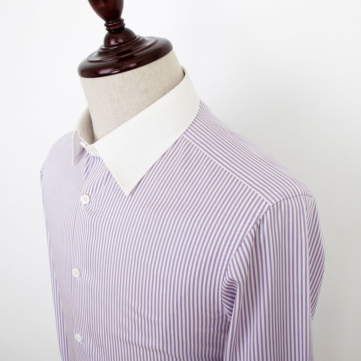 / 藍河男士長袖紫色條紋襯衫襯衣男撞色領純棉商務休閑2018秋裝新款