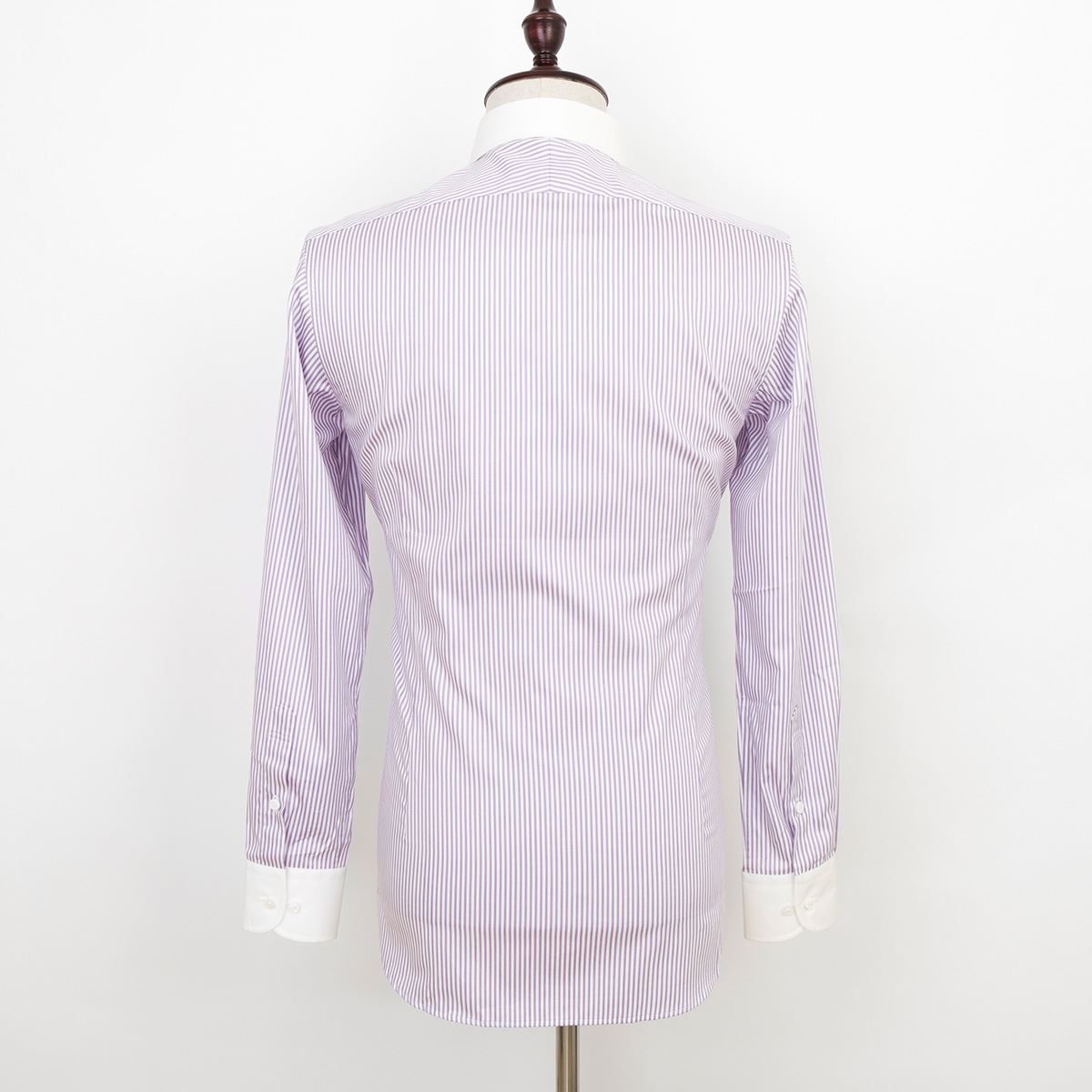 藍河男士長袖紫色條紋襯衫襯衣男撞色領純棉商務休閑2018秋裝新款