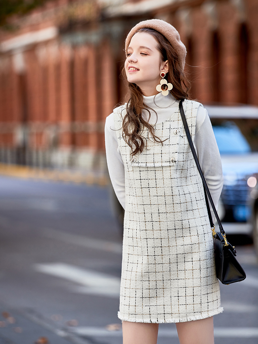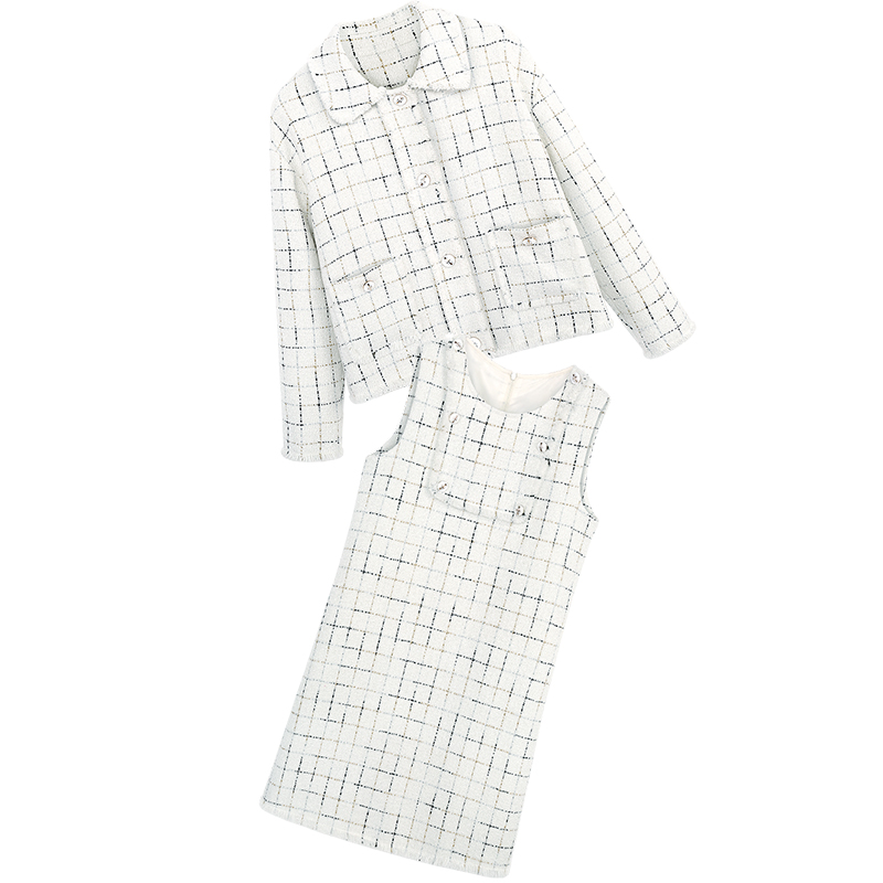 外套-白色格子|連衣裙-白色格子