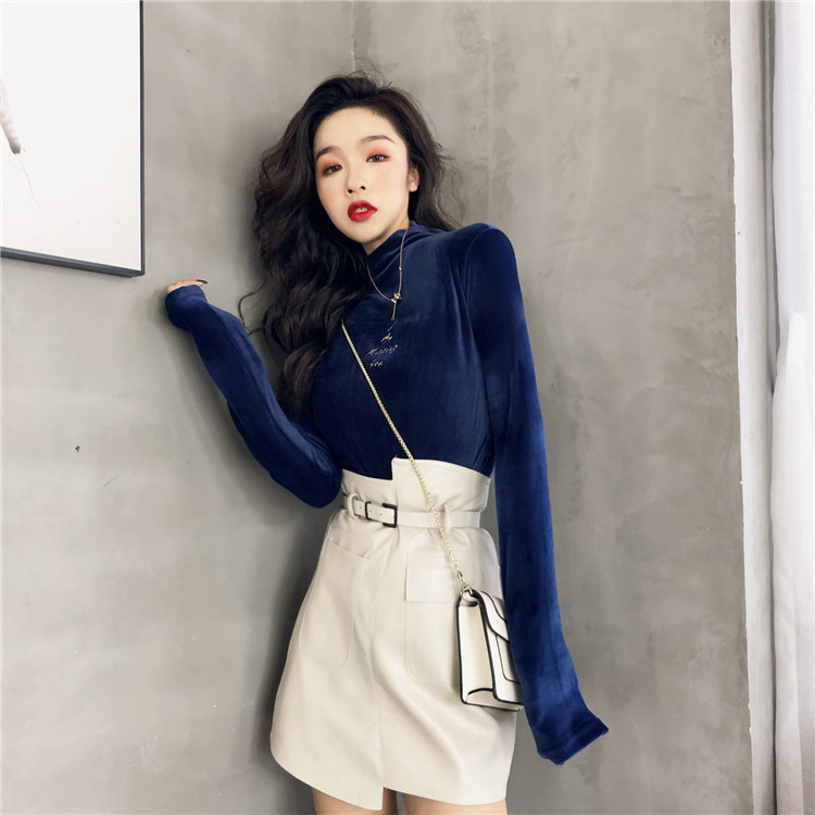 / 早秋上衣女慵懶復古溫柔秋冬新款刺繡半高領絲絨百搭打底衫T恤潮