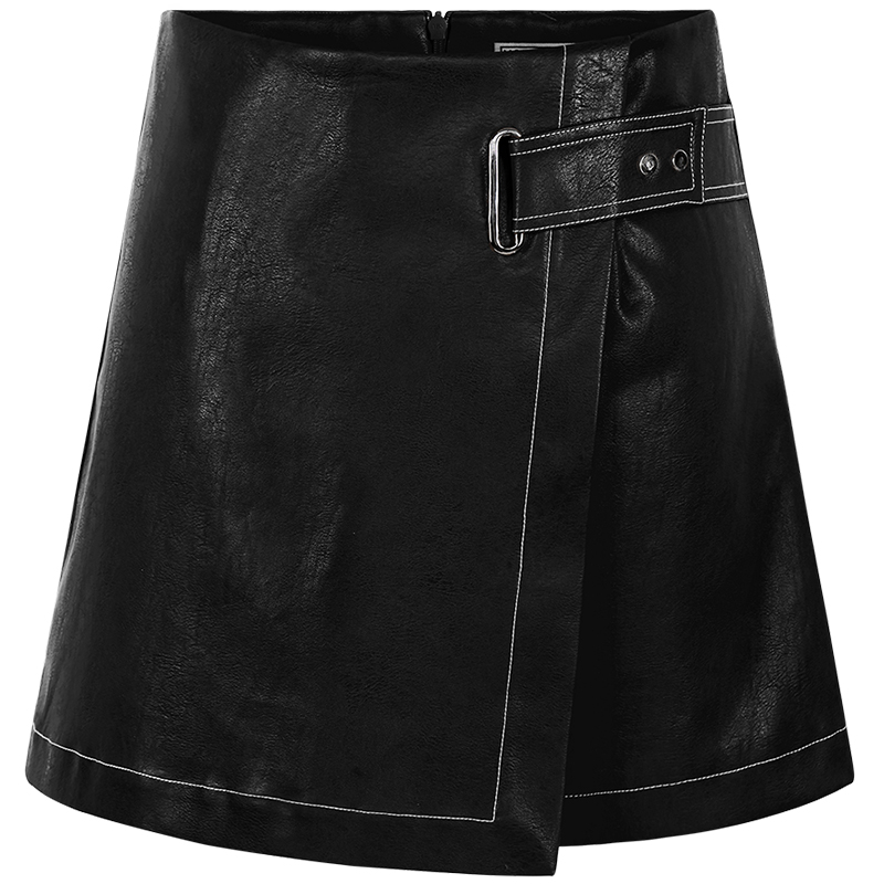 MG小象秋季高腰半身裙女2018新款短款包臀皮裙不規則時尚a字裙子