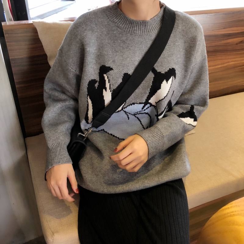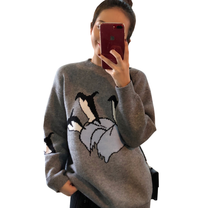 2018新款秋冬女裝韓版寬松企鵝提花套頭網紅針織衫毛衣上衣外套女