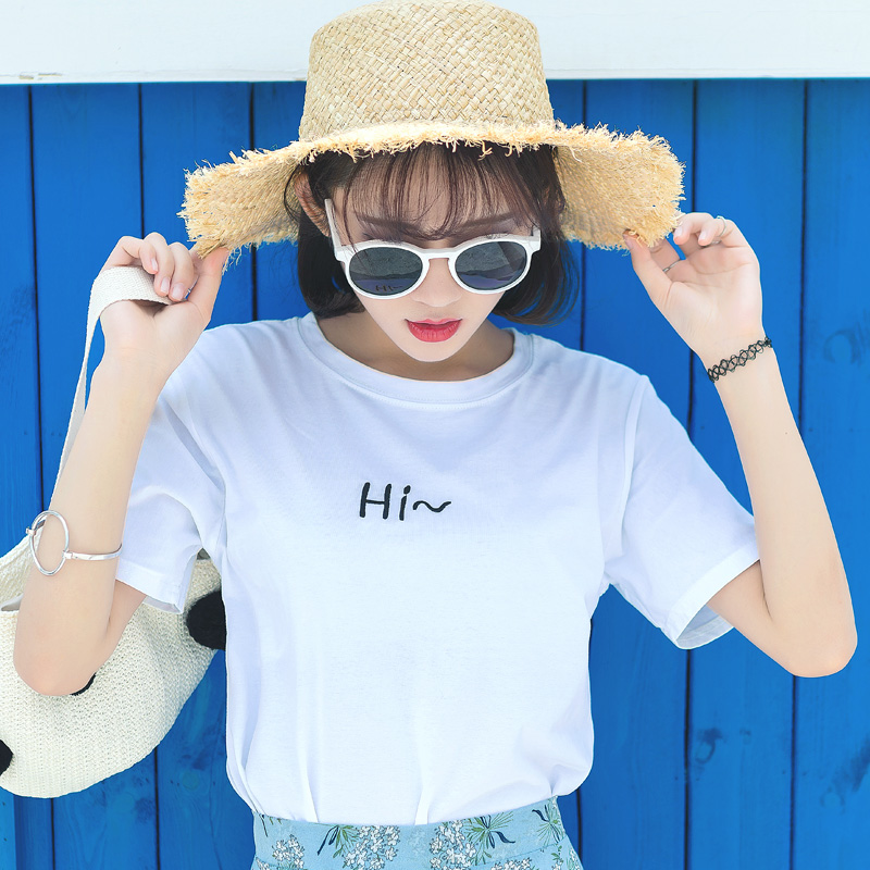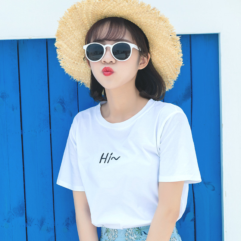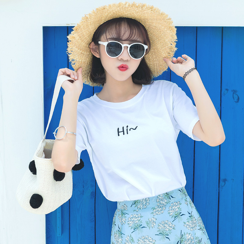 夏裝新款韓版女裝學院風寬松字母刺繡短袖T恤簡約白色上衣潮