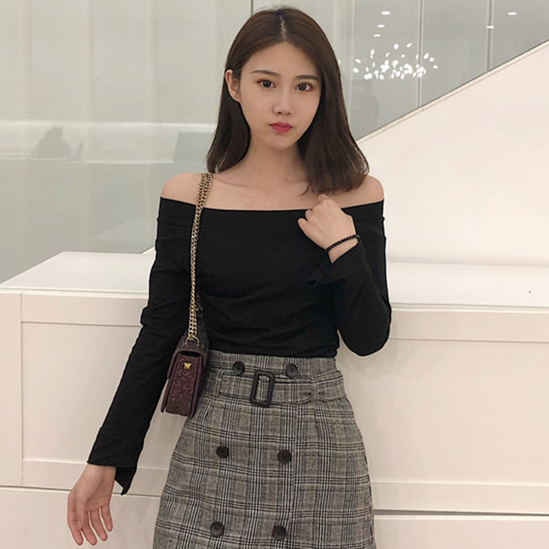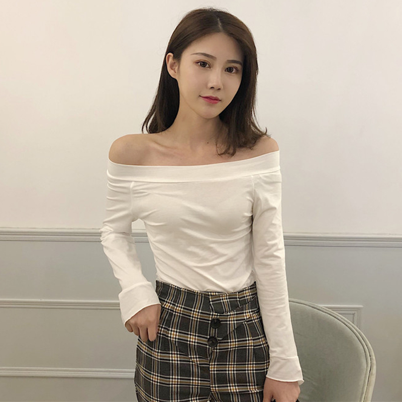 / 氣質一字領露肩打底衫女秋冬裝2018新款韓版修身顯瘦長袖T恤上衣