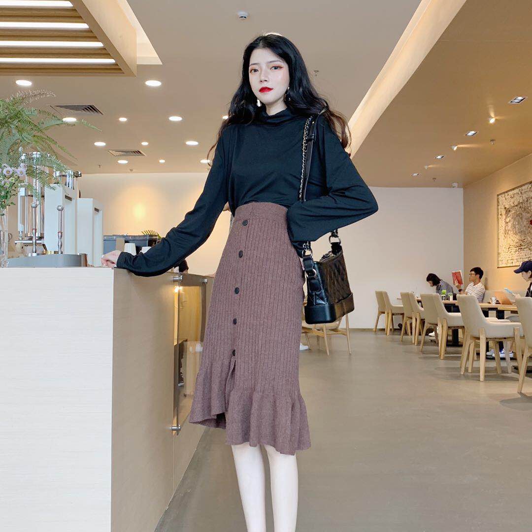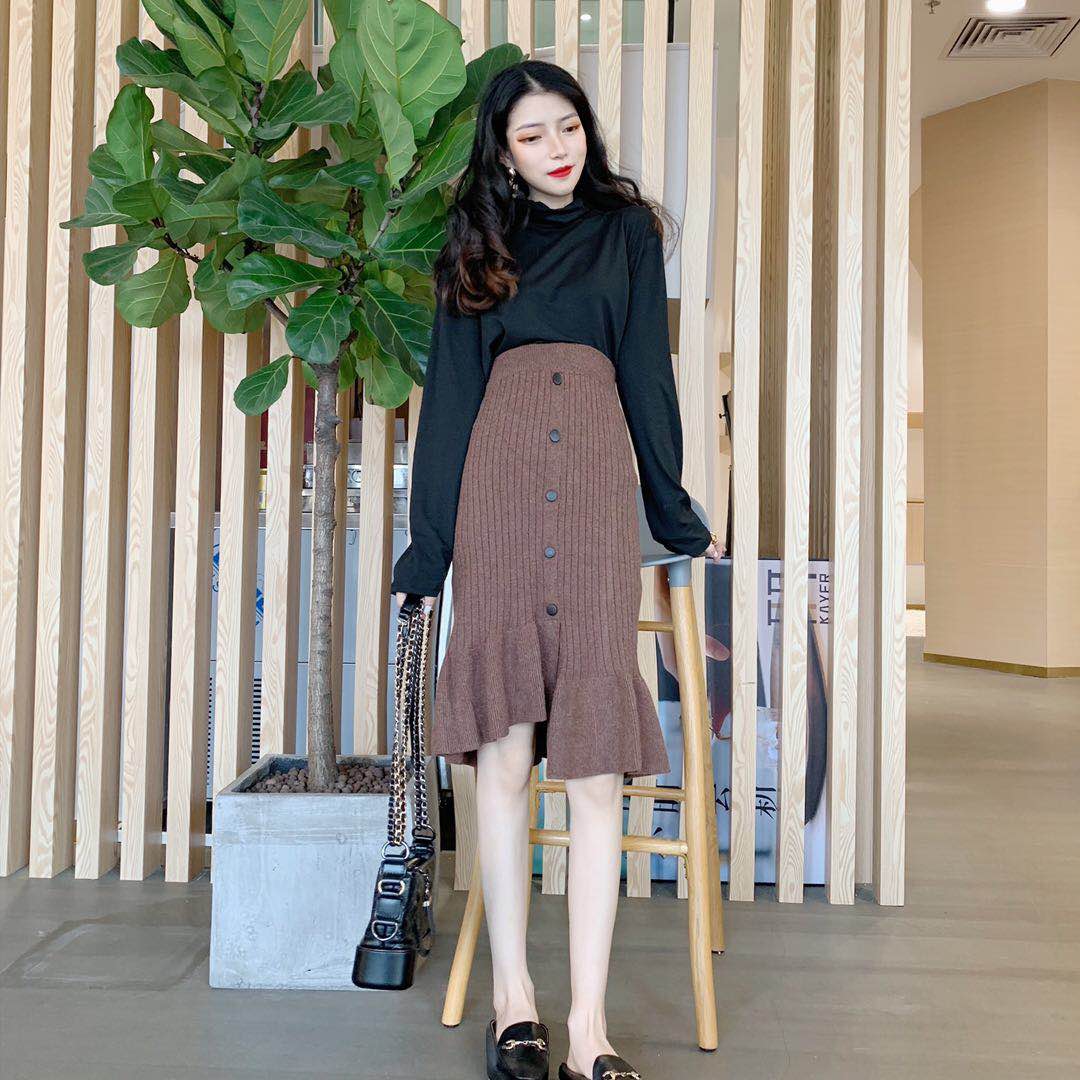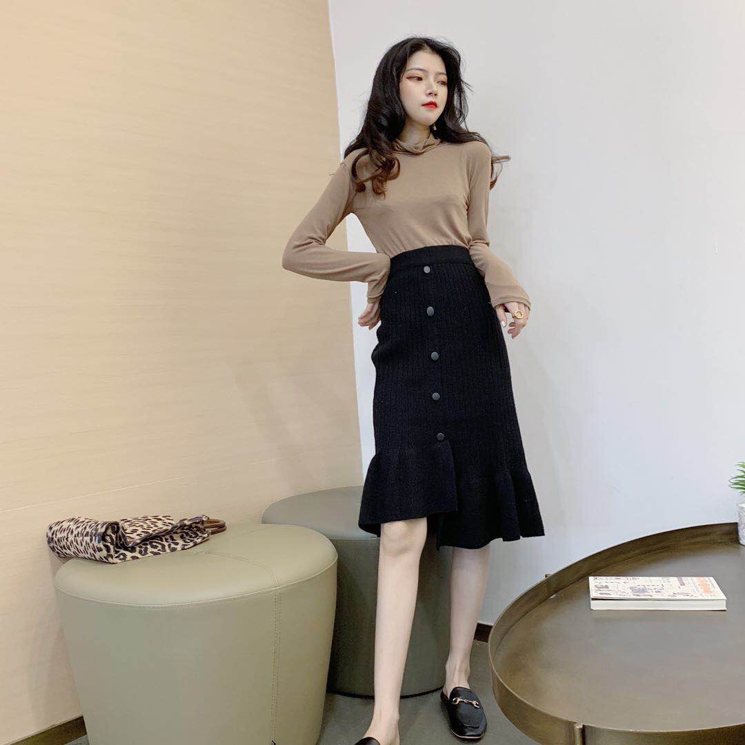 / 秋冬新款高腰時尚chic中長裙百搭復古不規則氣質保暖針織半身裙女