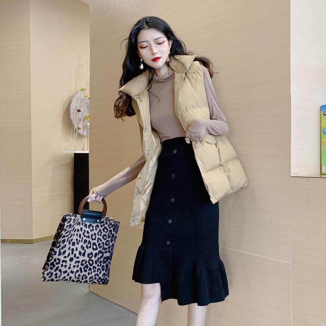 秋冬新款高腰時尚chic中長裙百搭復古不規則氣質保暖針織半身裙女