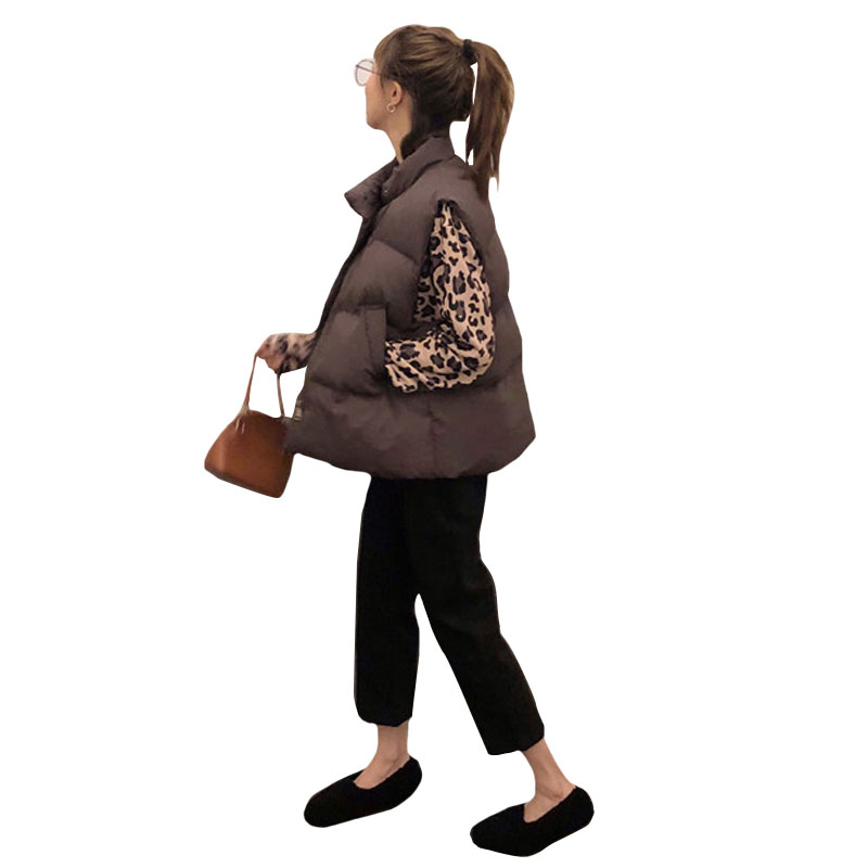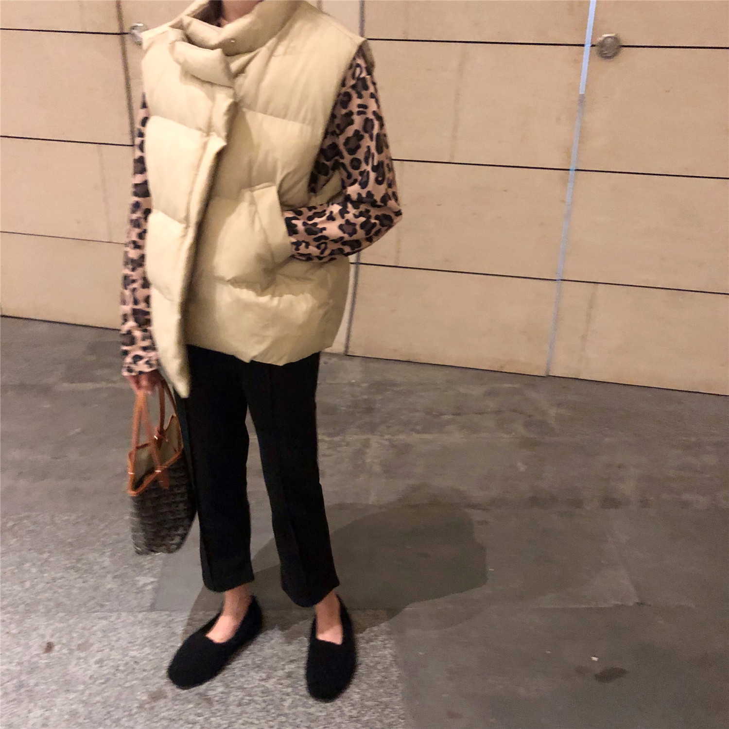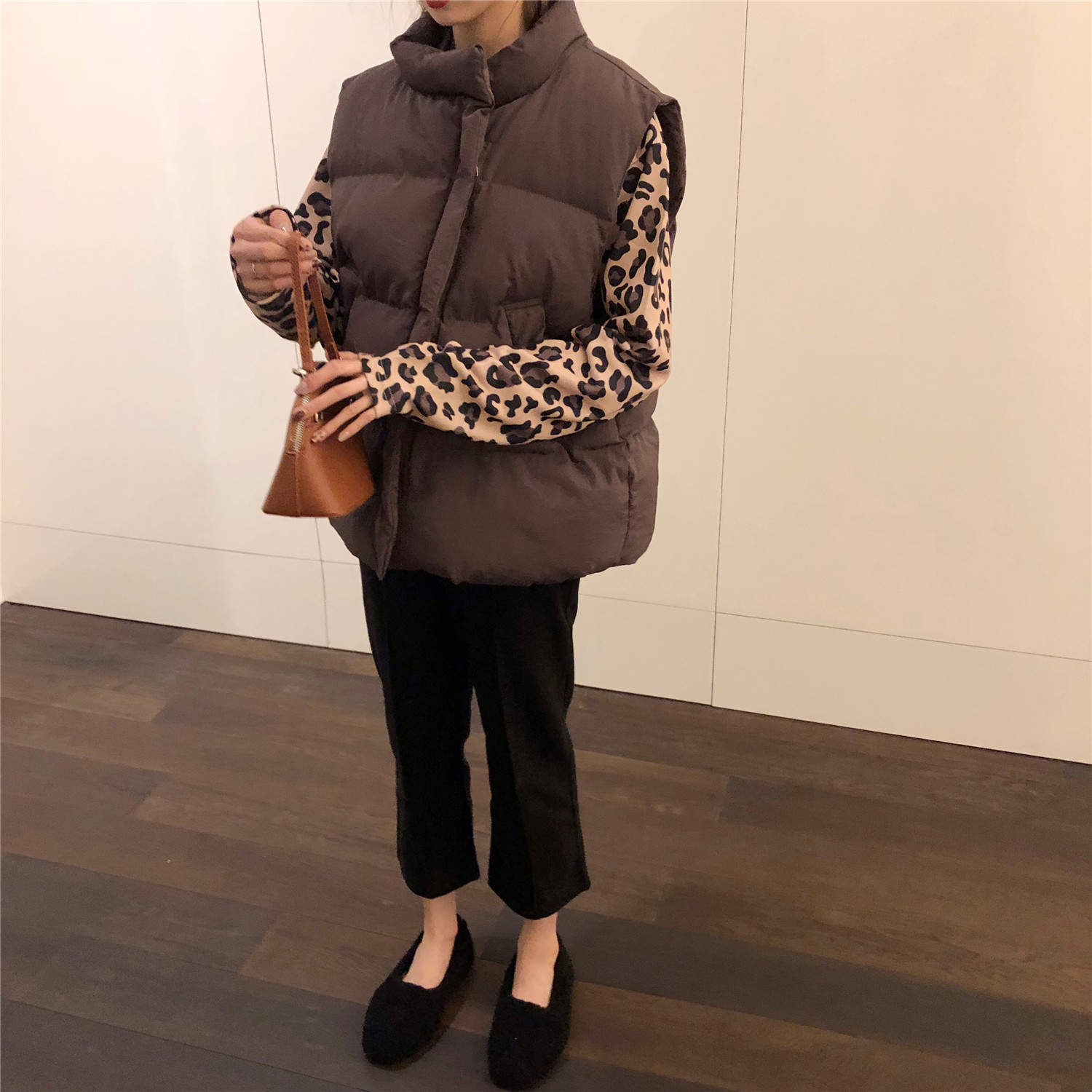 / 韓版時尚休閑套裝秋冬女裝面包服棉衣馬甲+豹紋內搭+呢子褲三件套