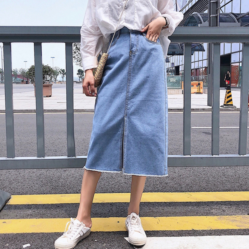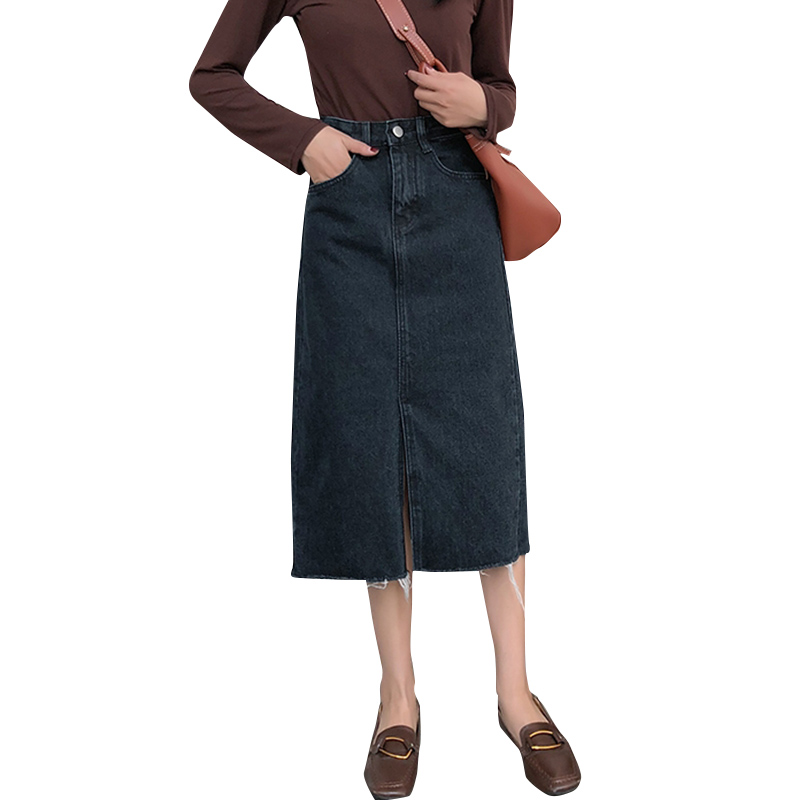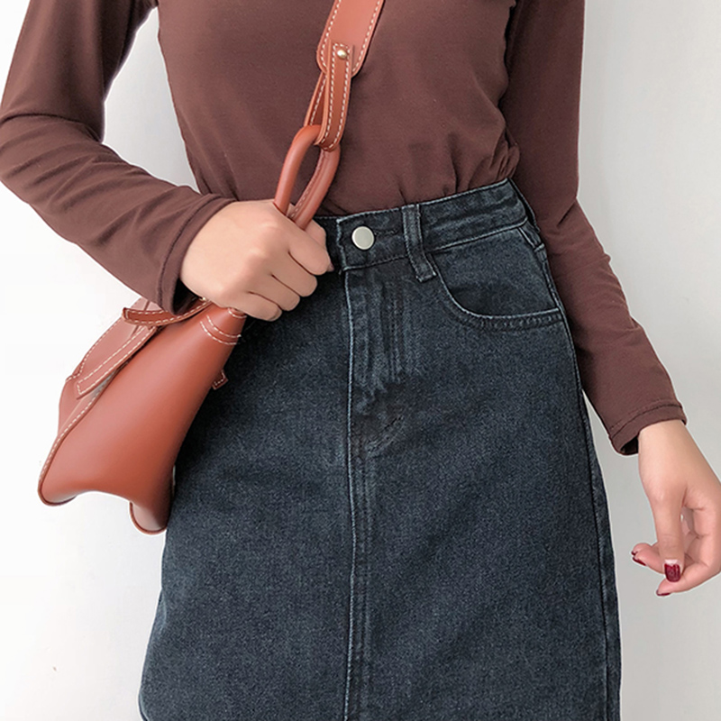 / 秋裝女2018新款復古港風高腰開叉牛仔半身裙學生中長A字包臀裙子