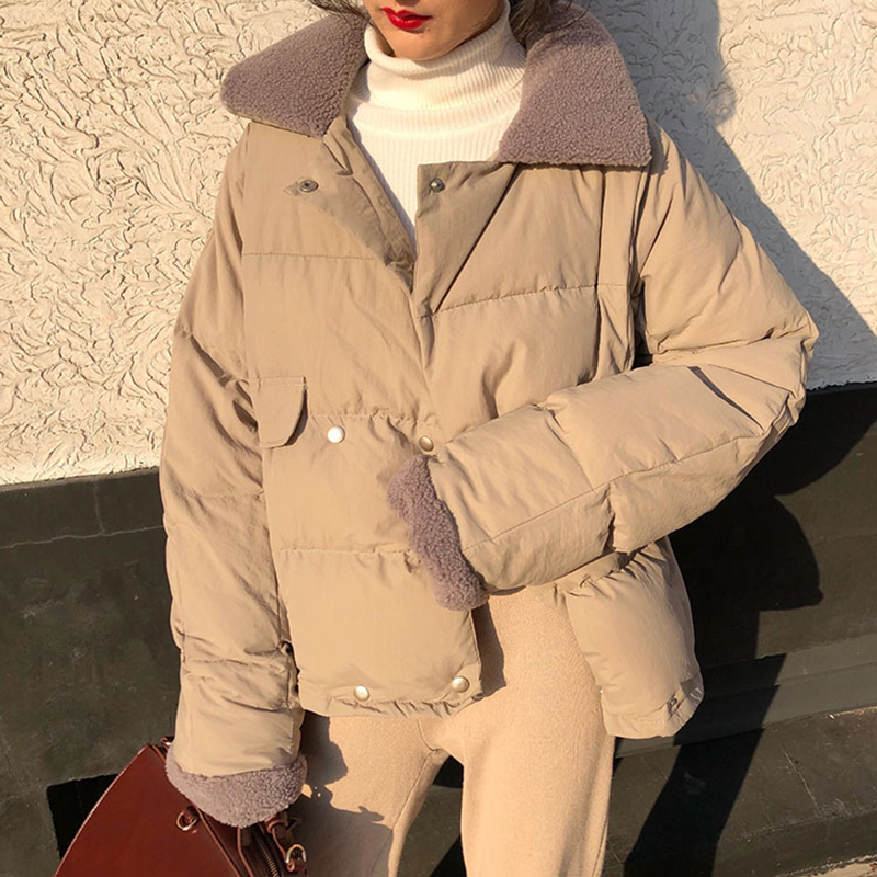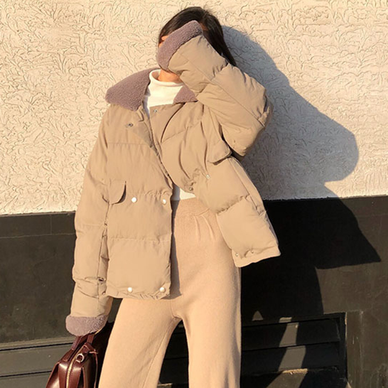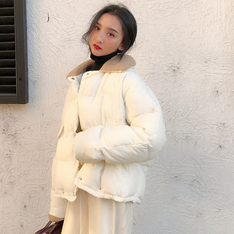 時尚寬松加厚棉襖2018冬季女裝新款毛領面包服學生休閑長袖棉外套