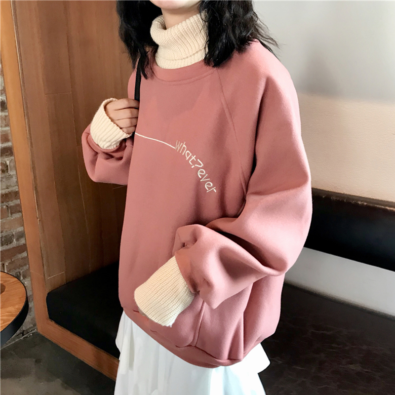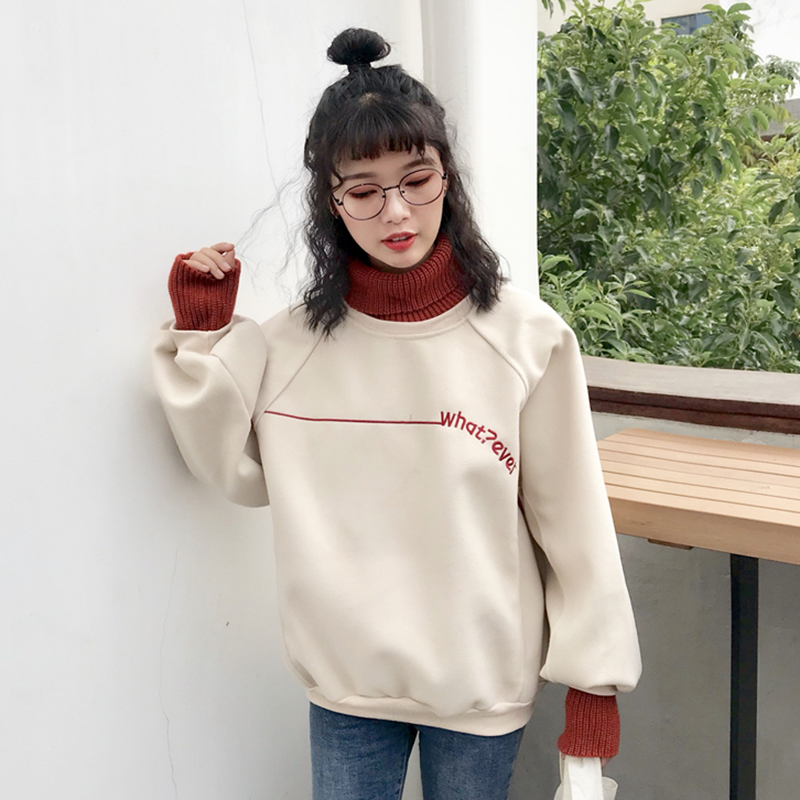 衛衣2018新款女長袖 韓版 寬松 高領假兩件上衣女 毛呢厚衛衣女冬