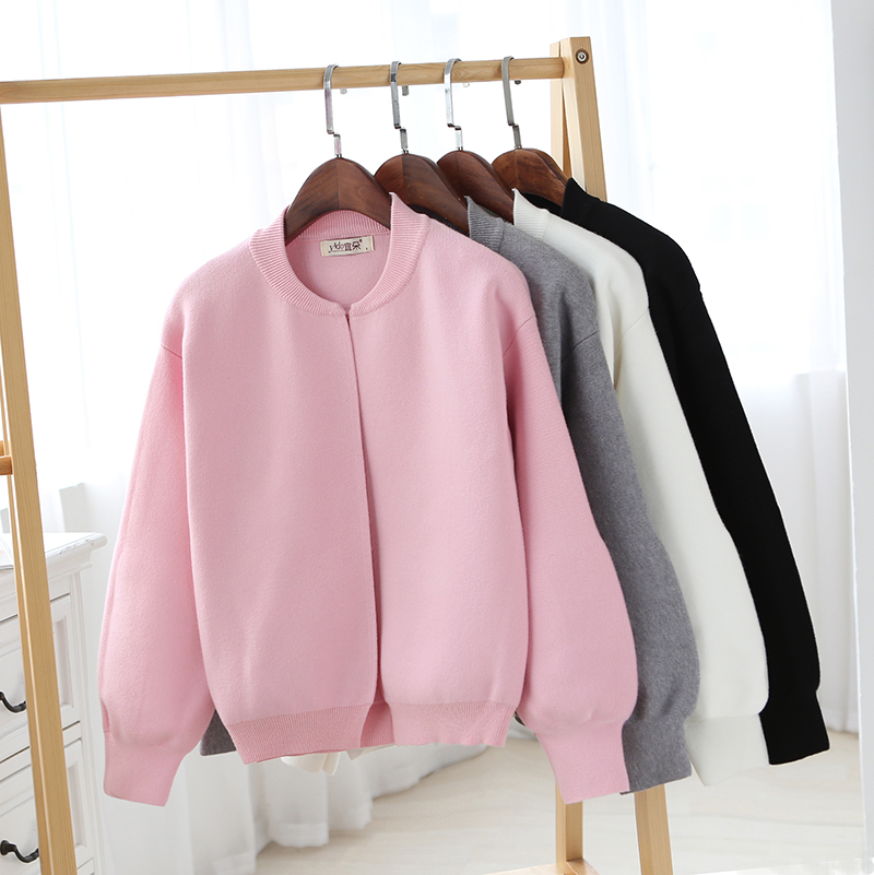 / 春季新款開衫毛衣外套女短款燈籠袖百搭寬松加厚外搭針織開衫