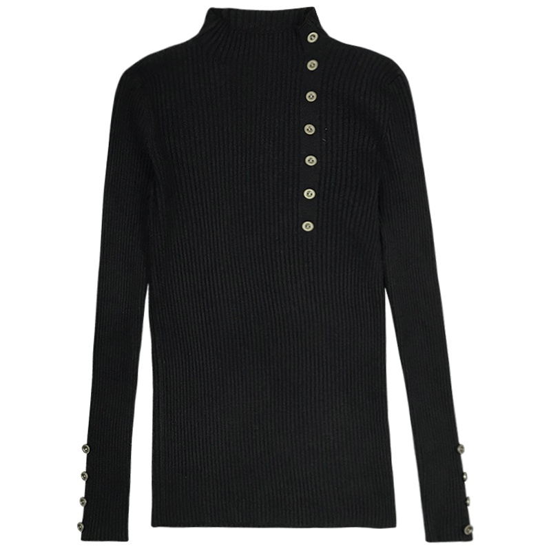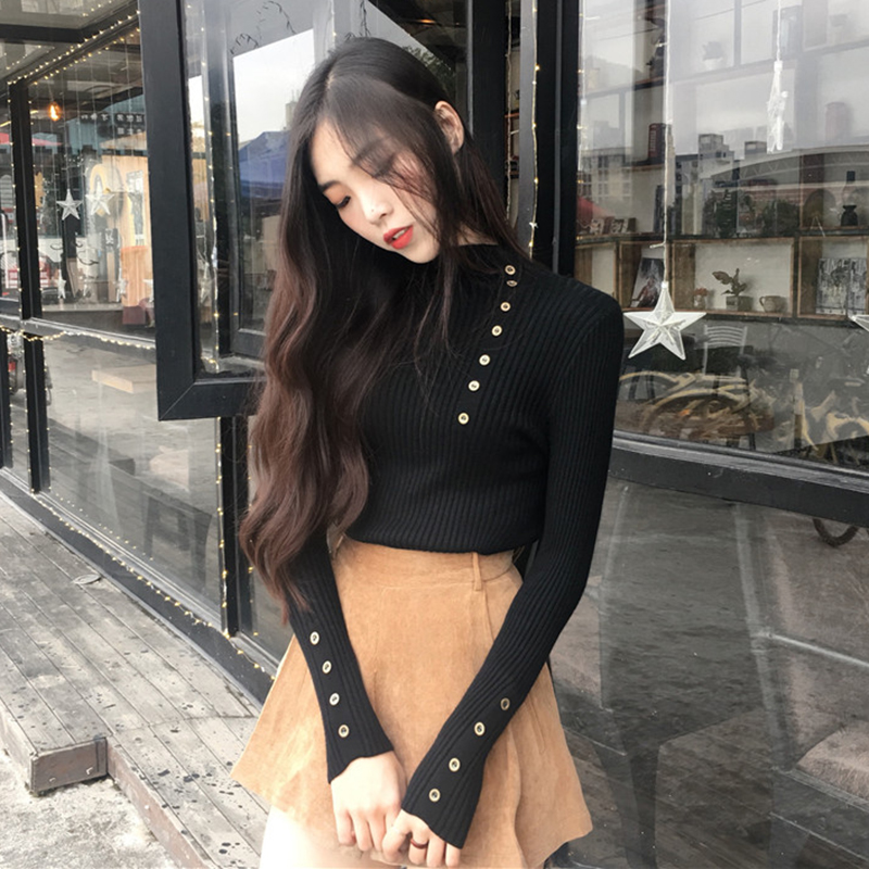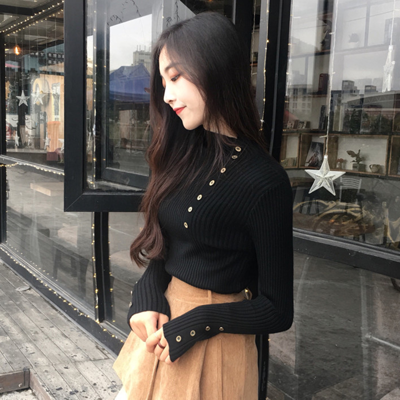 港味修身顯瘦打底衫女秋裝新款半高領純色氣質針織衫復古長袖上衣