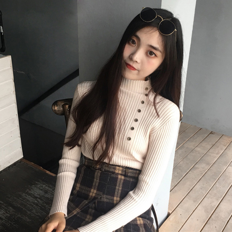 / 港味修身顯瘦打底衫女秋裝新款半高領純色氣質針織衫復古長袖上衣