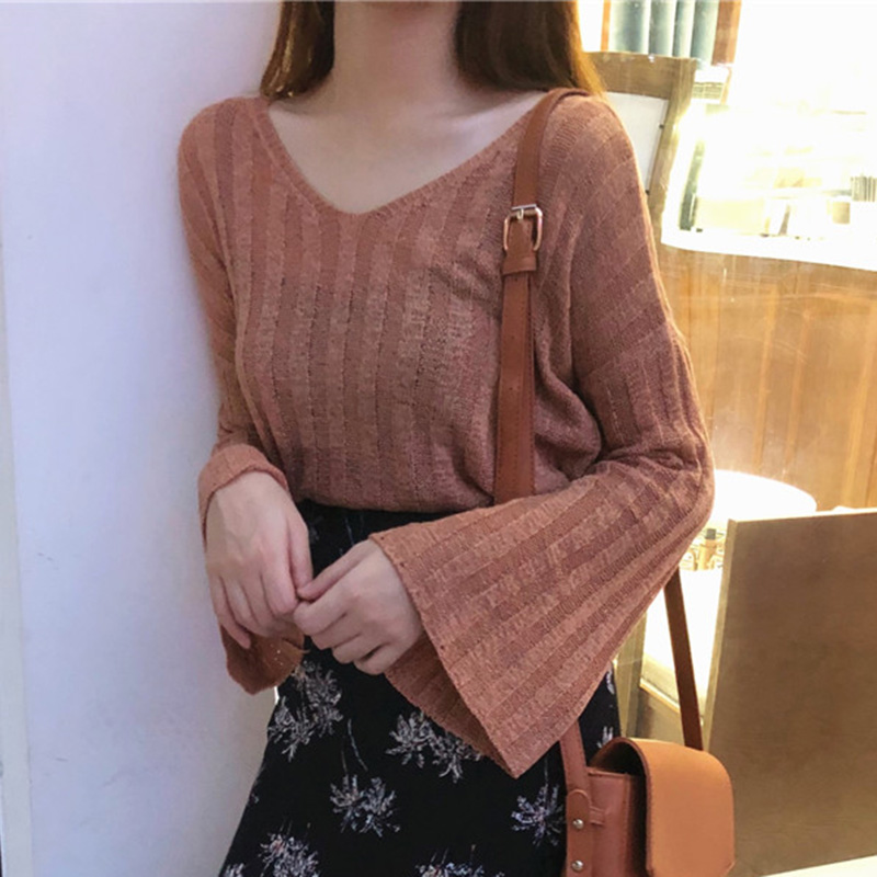 / 針織衫女2018秋裝新款韓版學生喇叭長袖短上衣時尚寬松防曬薄罩衫