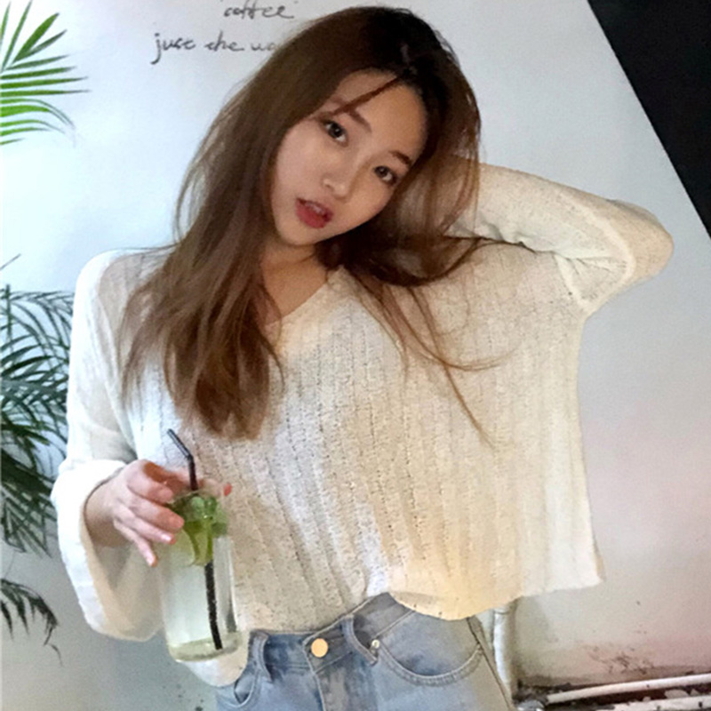 針織衫女2018秋裝新款韓版學生喇叭長袖短上衣時尚寬松防曬薄罩衫