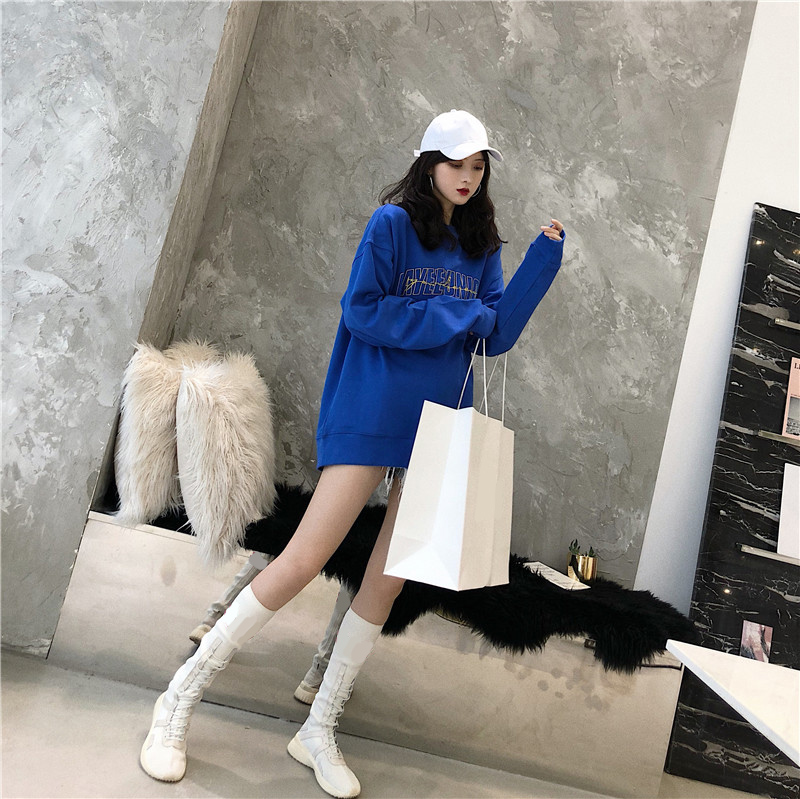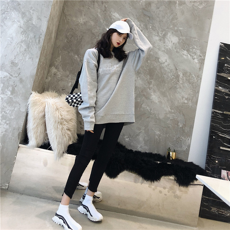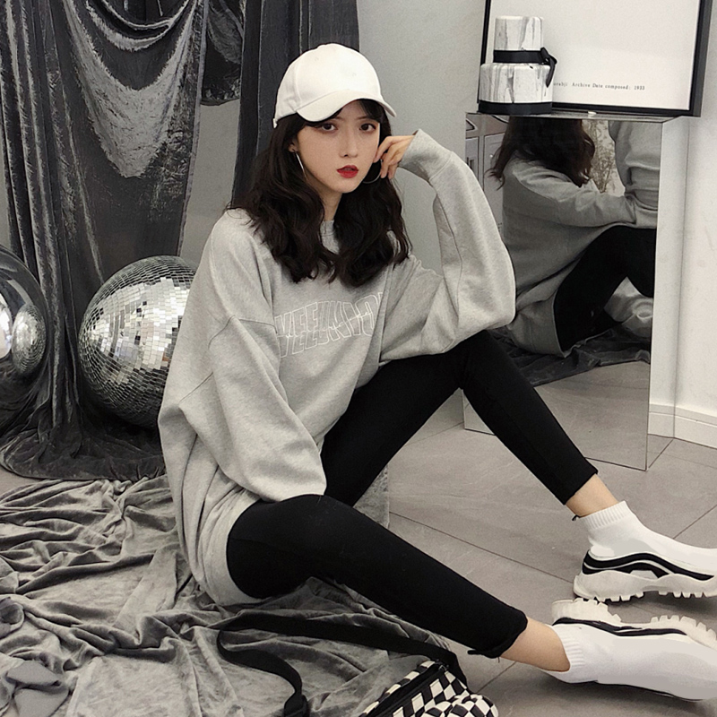 / 秋裝新款韓版小清新chic上衣女時尚百搭寬松遮臀繡花字母長袖衛衣