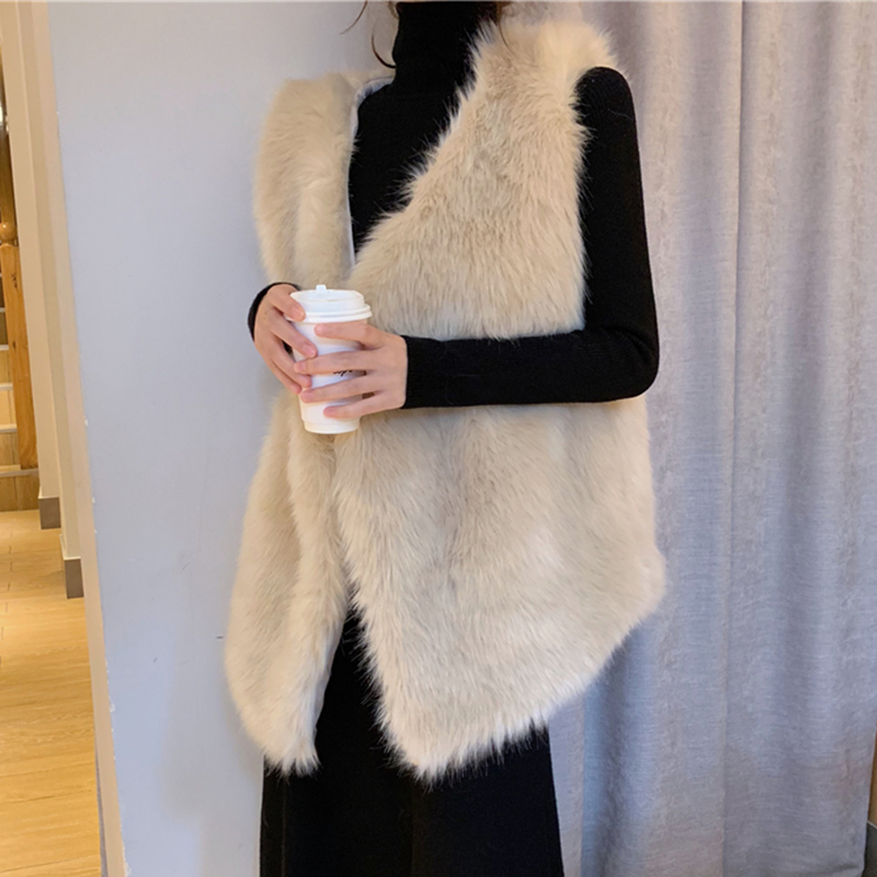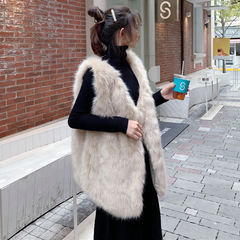/ 寬松V領毛絨馬甲女秋冬裝2018新款學生純色坎肩時尚休閑保暖外套