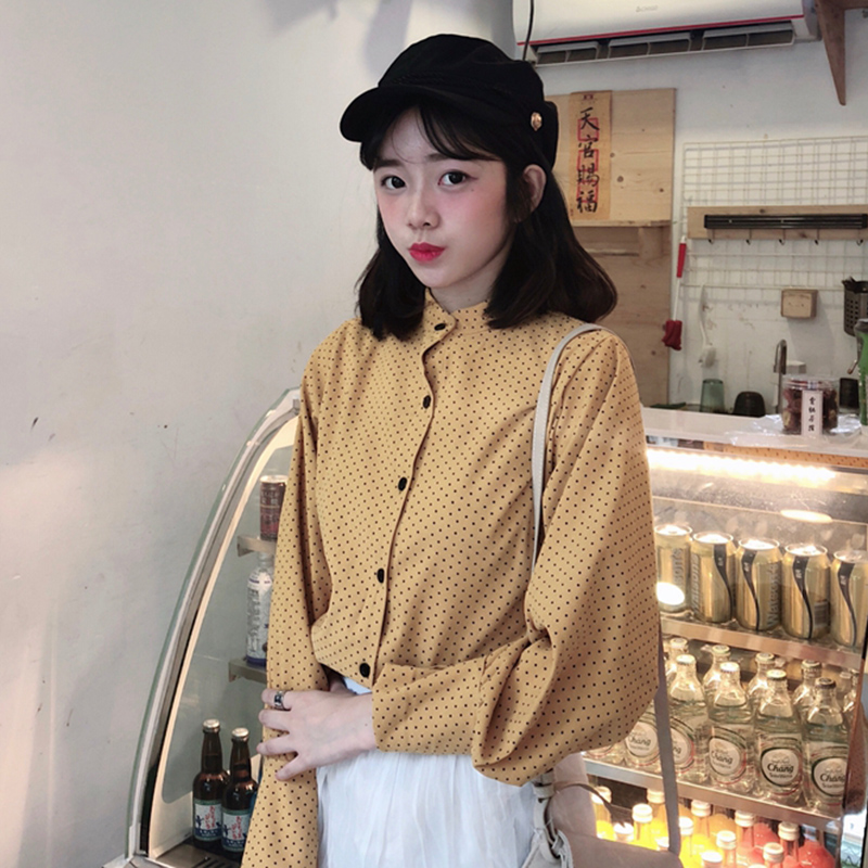 秋冬女裝2018新款學生寬松長袖時尚襯衫小清新波點休閑薄外套上衣