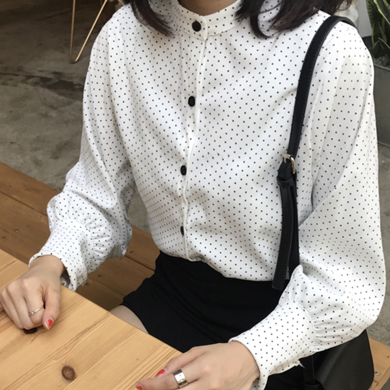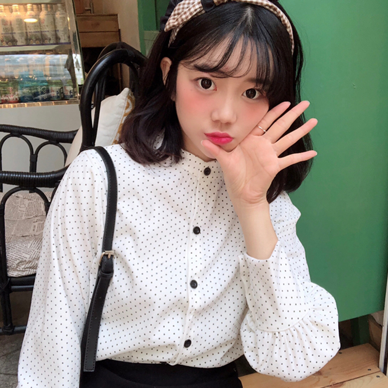 / 秋冬女裝2018新款學生寬松長袖時尚襯衫小清新波點休閑薄外套上衣