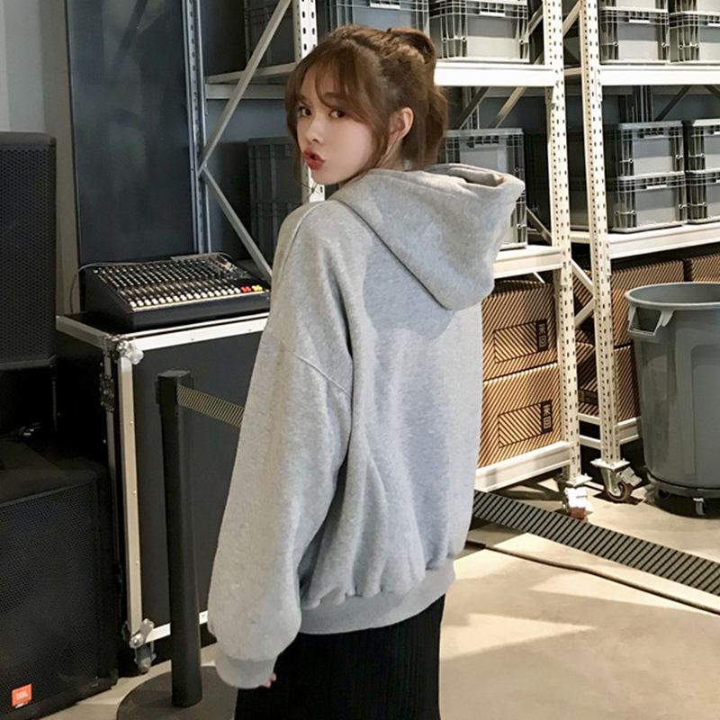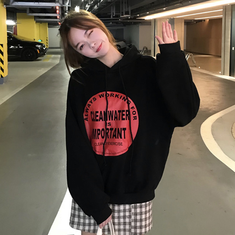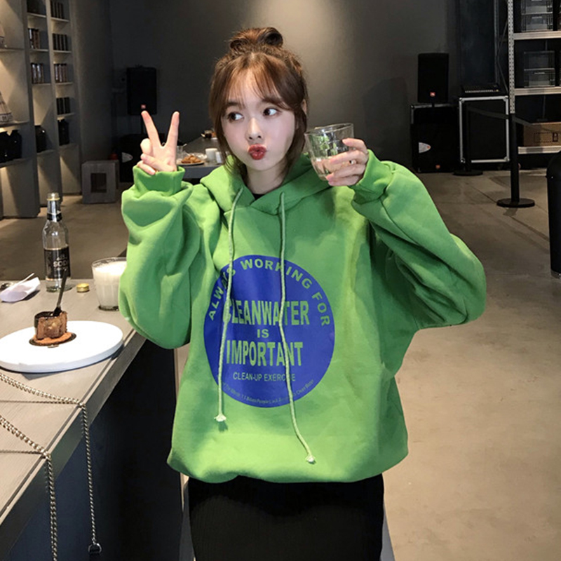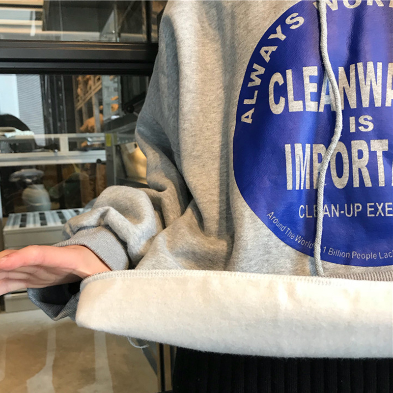 秋冬女裝2018新款時尚字母印花連帽衛衣加絨外套學生長袖休閑上衣