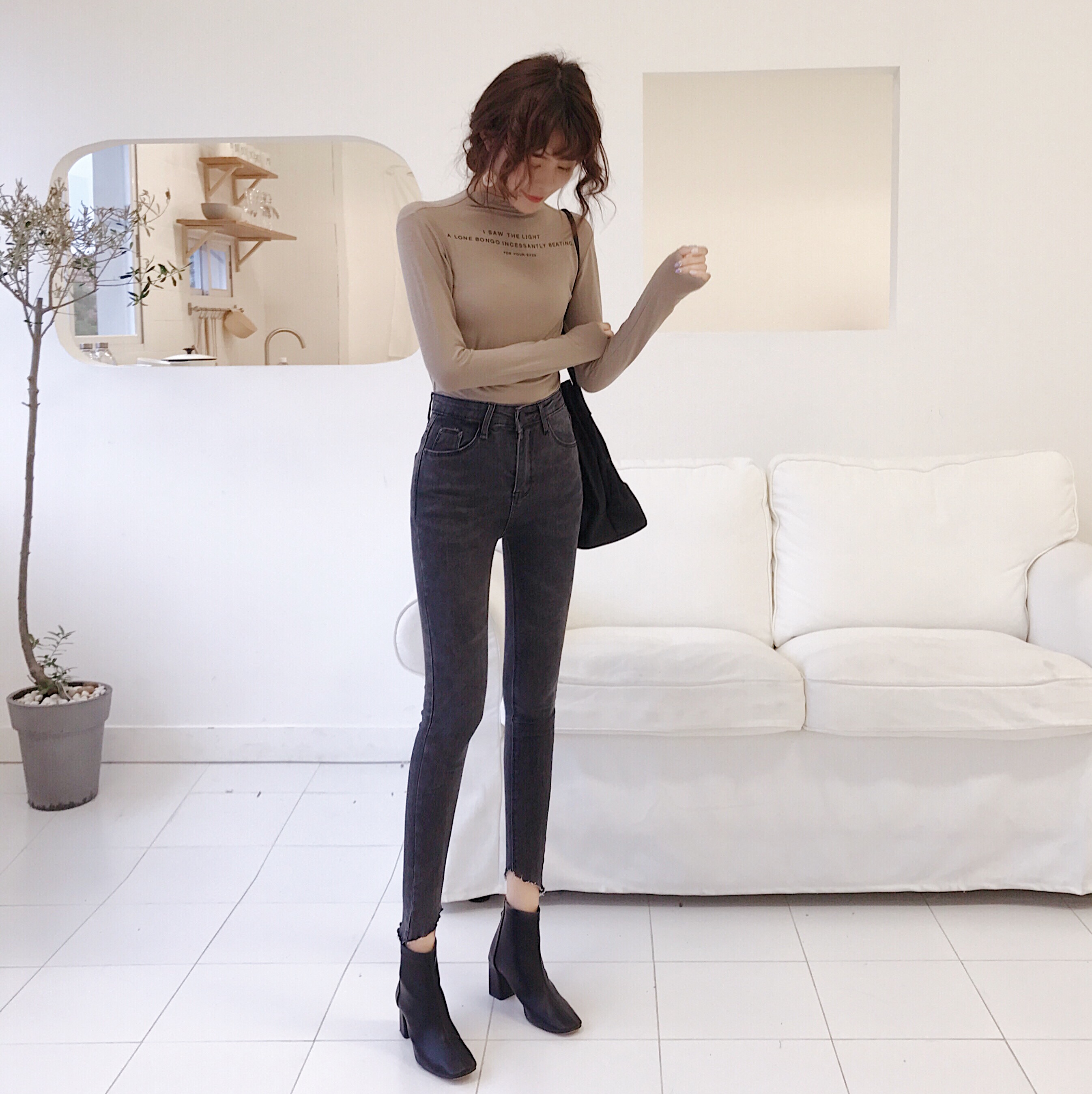 2018秋冬新款chic韓國高腰彈力牛仔褲百搭顯瘦九分褲小腳鉛筆褲女
