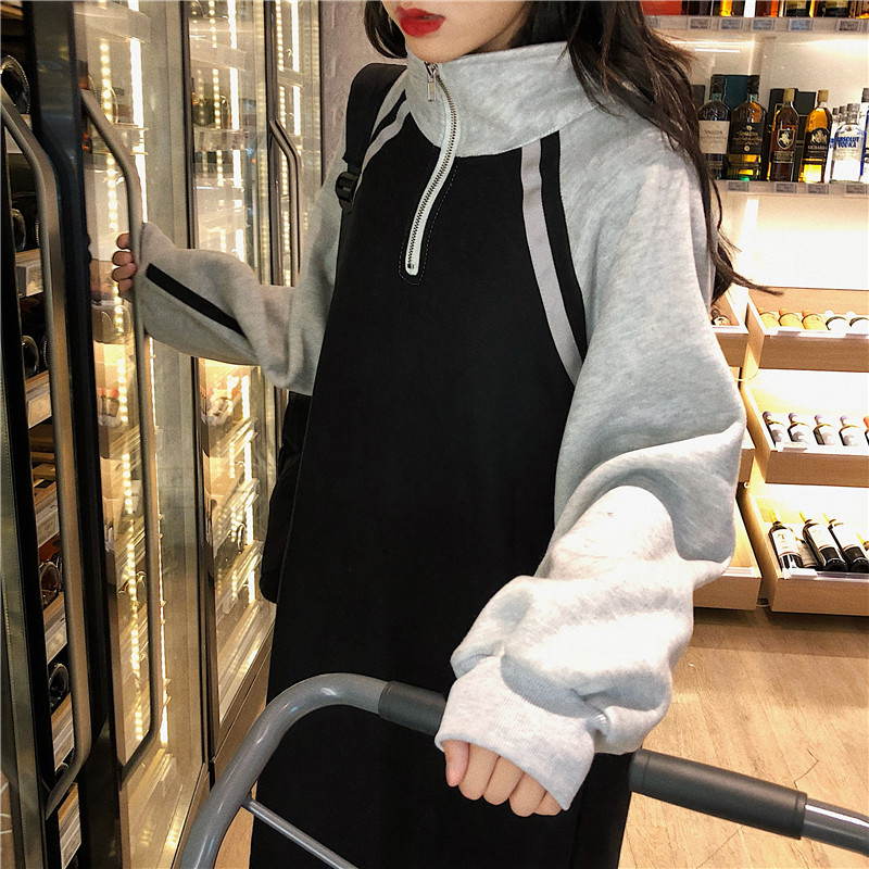 慵懶風加絨衛衣裙秋冬女裝2018新款韓版學生長袖連衣裙子拼色長裙