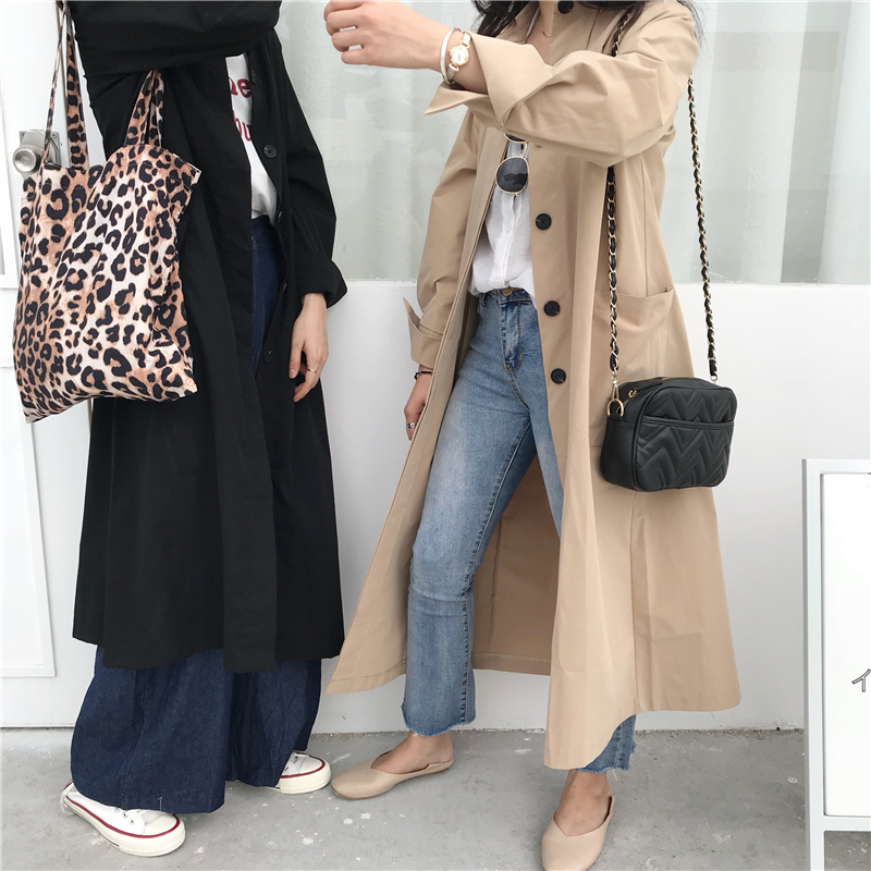 / 小香風秋裝新款韓版chic韓風單排扣百搭時尚氣質長款風衣寬松外套