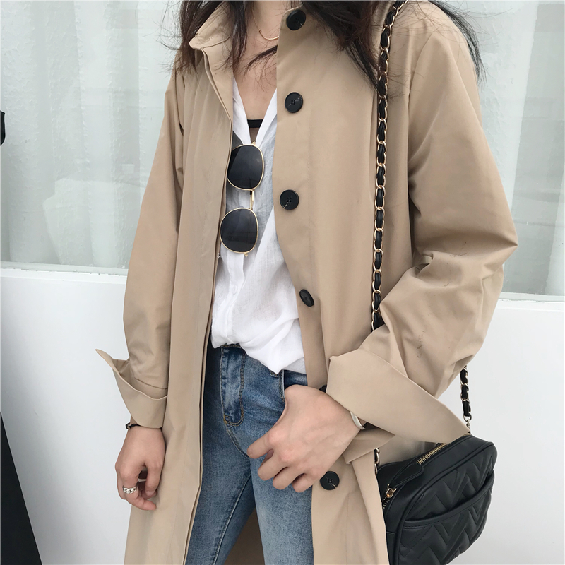 小香風秋裝新款韓版chic韓風單排扣百搭時尚氣質長款風衣寬松外套