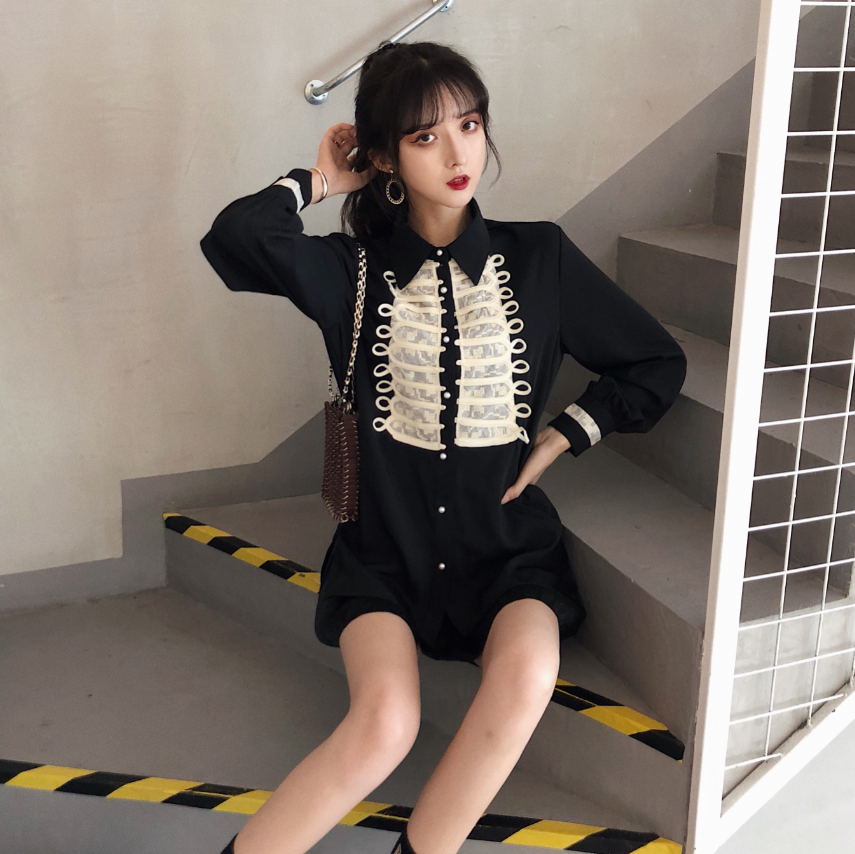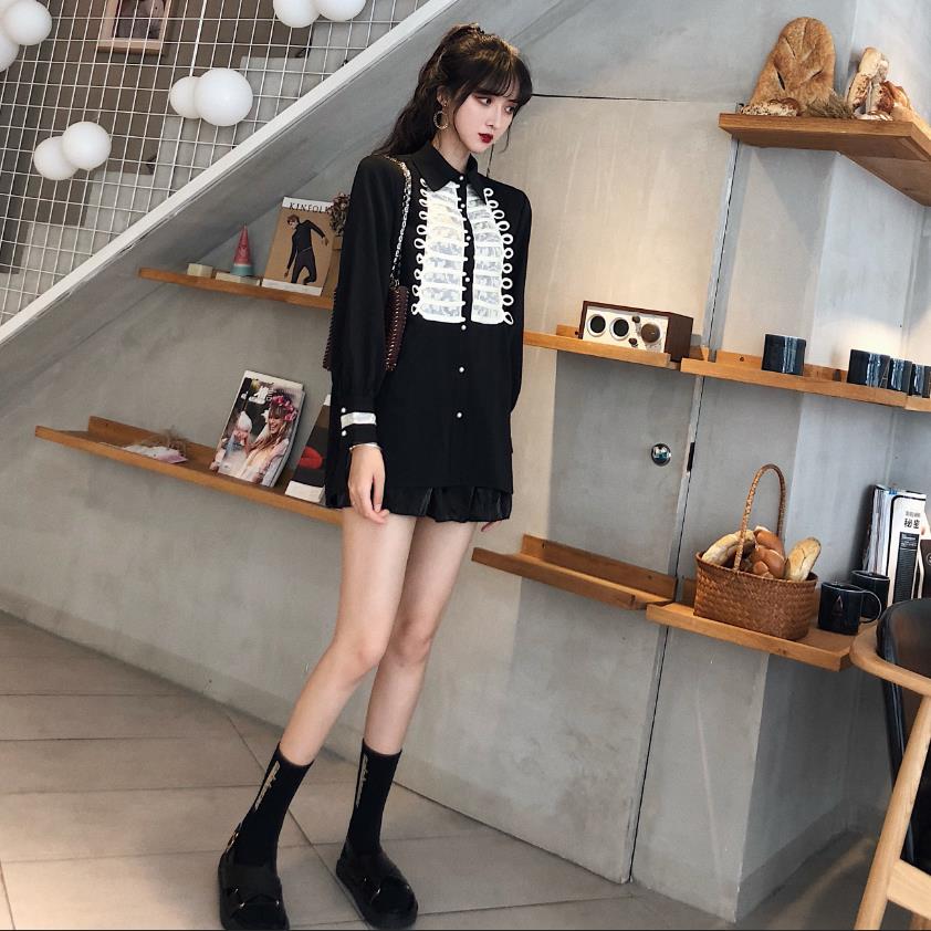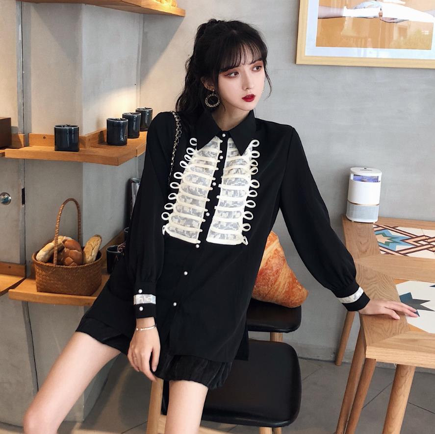 / 秋裝氣質時尚新款優雅百搭中長款上衣女復古chic寬松洋氣長袖襯衫