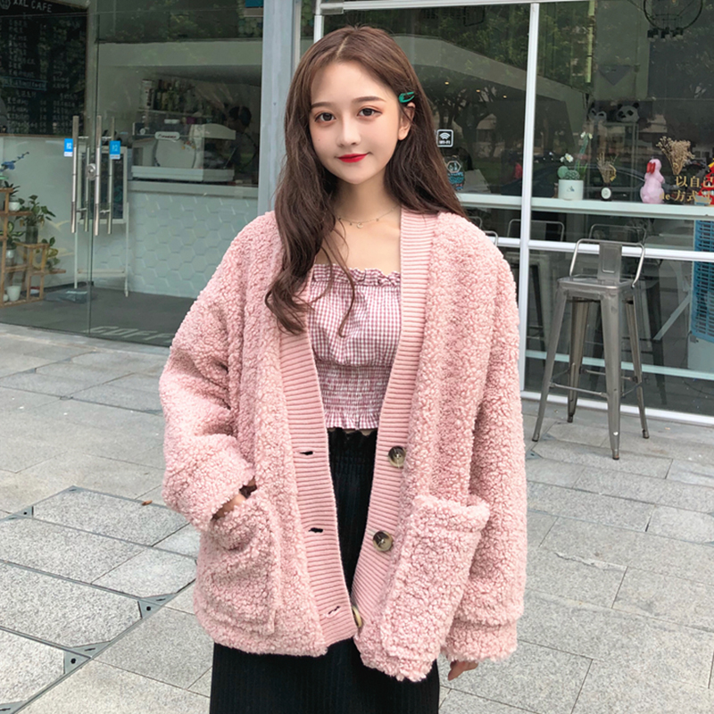 學生慵懶風寬松開衫秋裝女2018新款甜美純色外套學生簡約長袖上衣