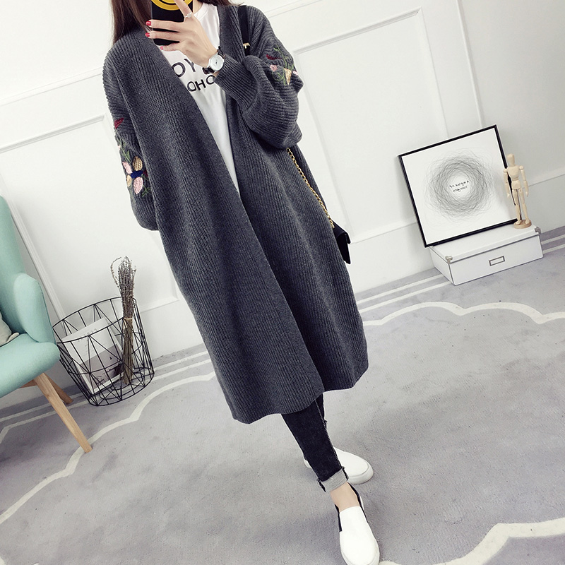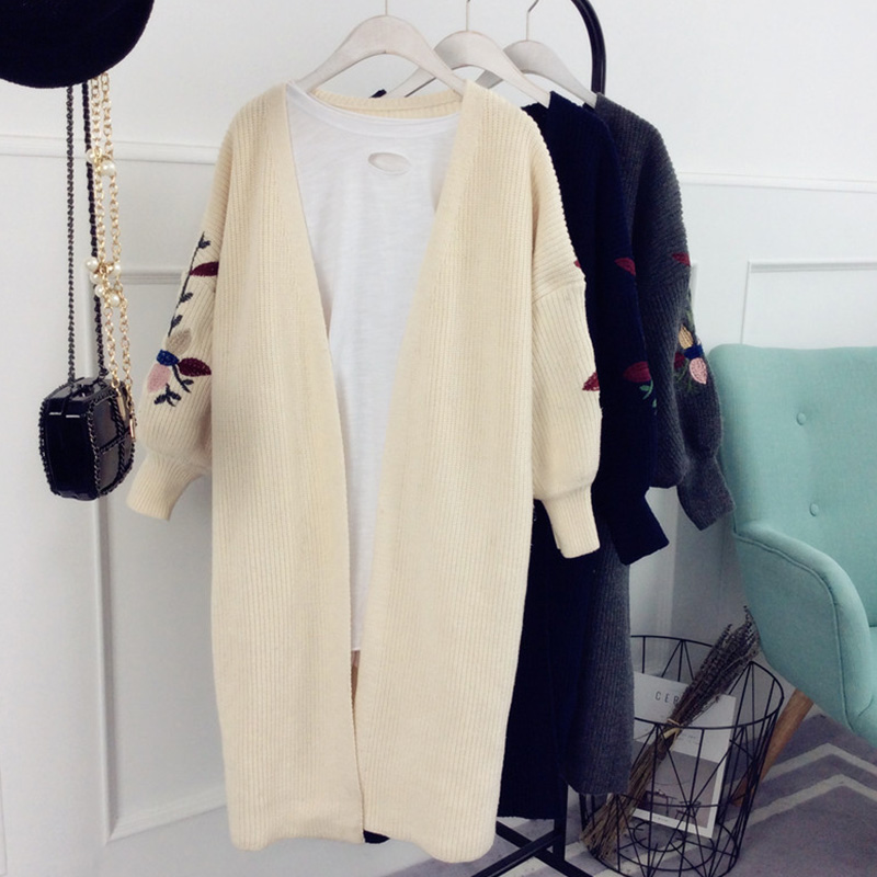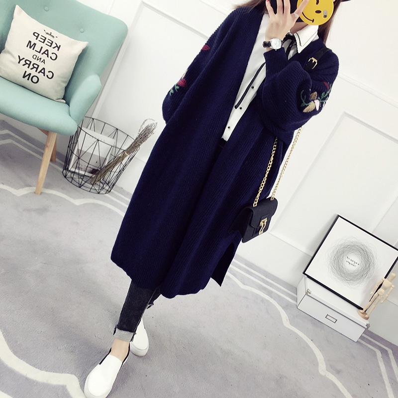/ 春裝外套新款春秋韓版針織刺繡毛衣女中長款學生寬松百搭開衫