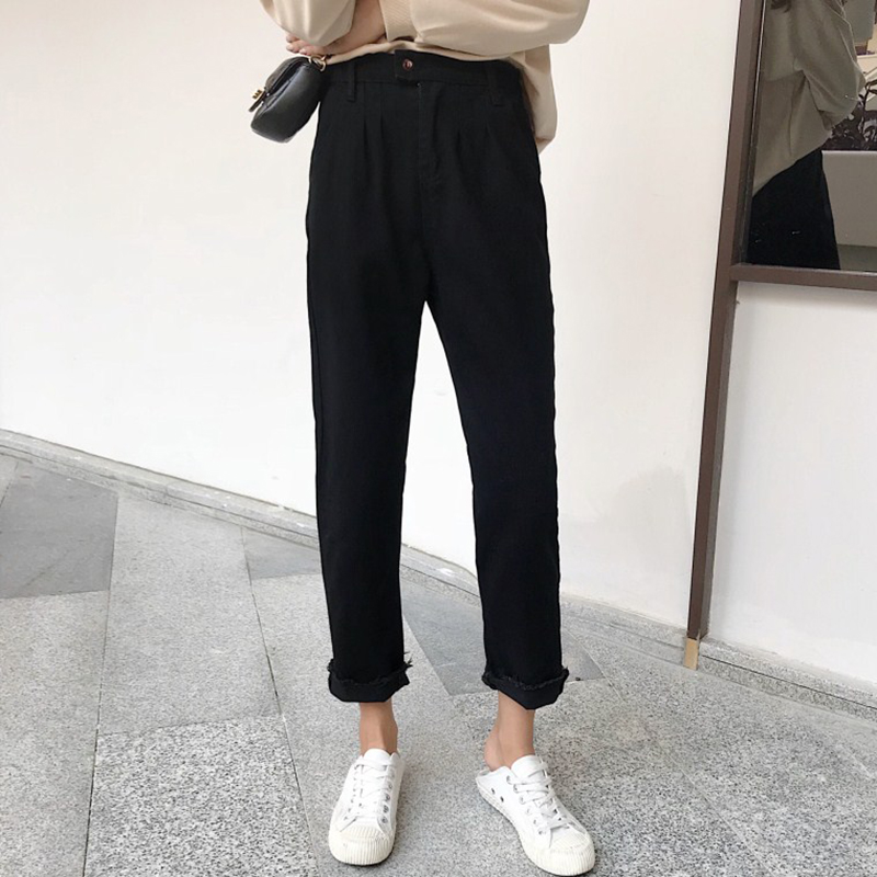 / chic牛仔褲2018秋冬新款韓版女裝高腰哈倫褲學生寬松顯瘦長褲子女