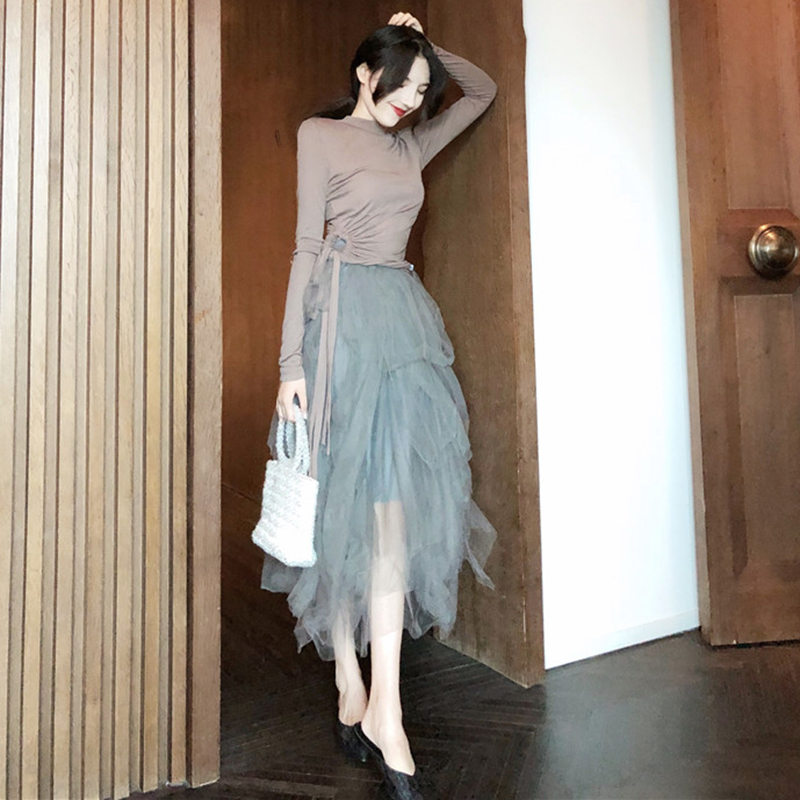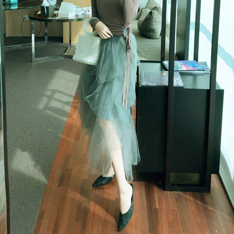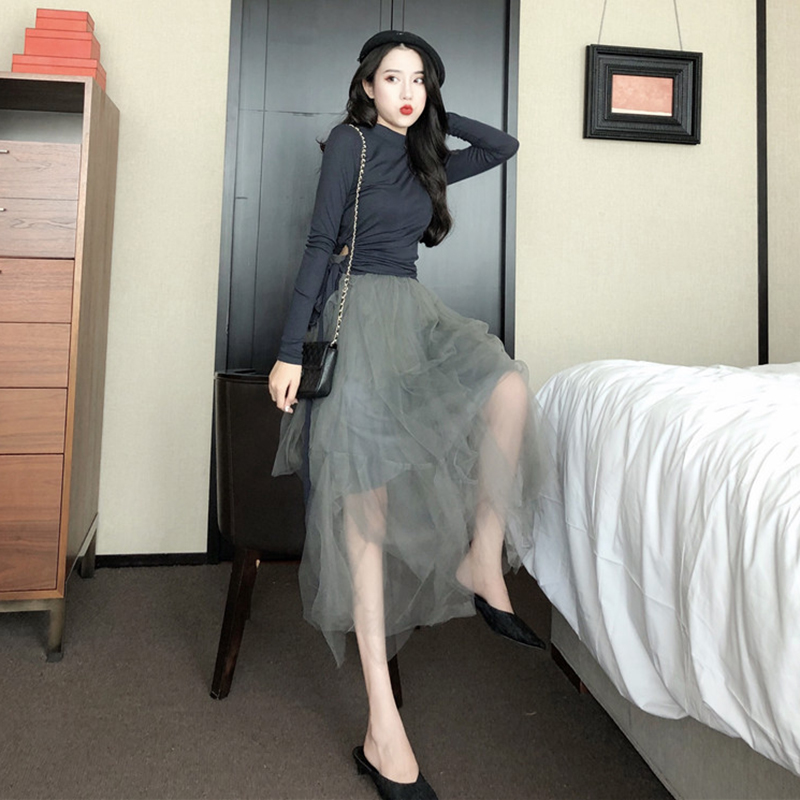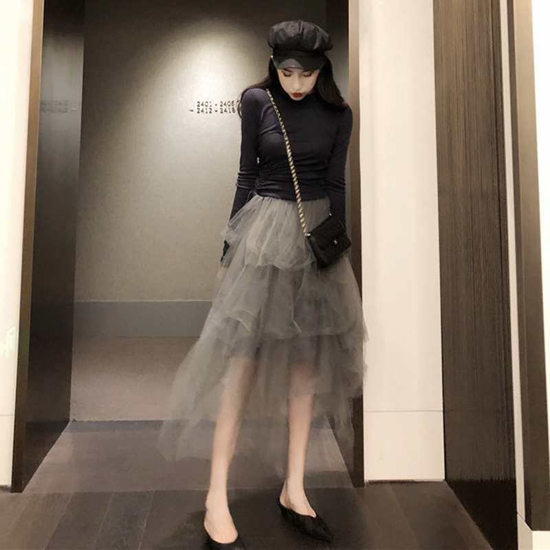 / 時尚百搭網紗半身裙女秋冬裝2018新款韓版中長款高腰顯瘦A字裙子