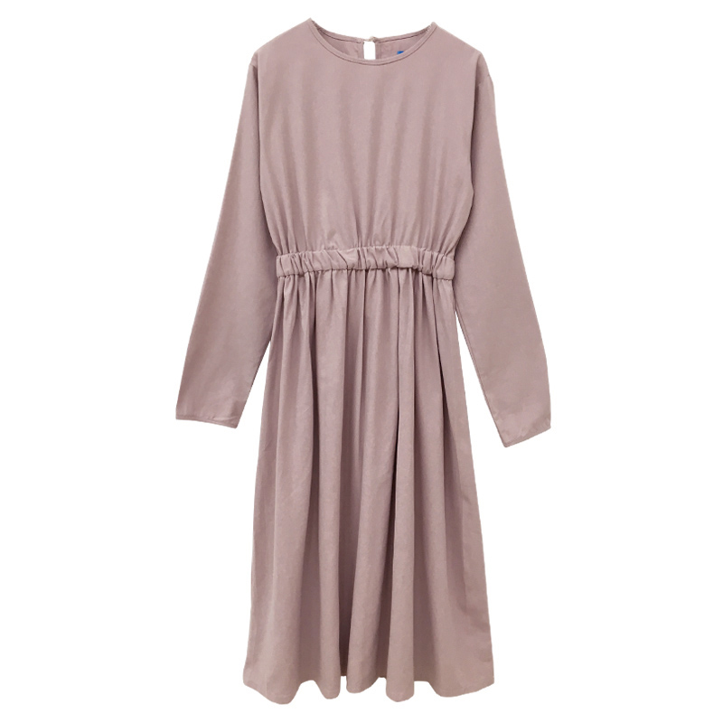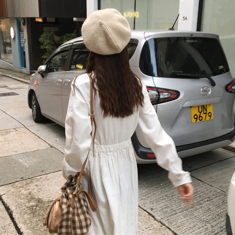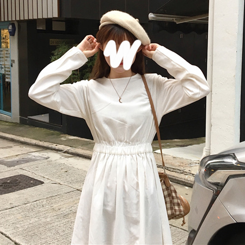 / 學院風中長裙子秋裝女2018新款純色寬松顯瘦連衣裙松緊高腰A字裙