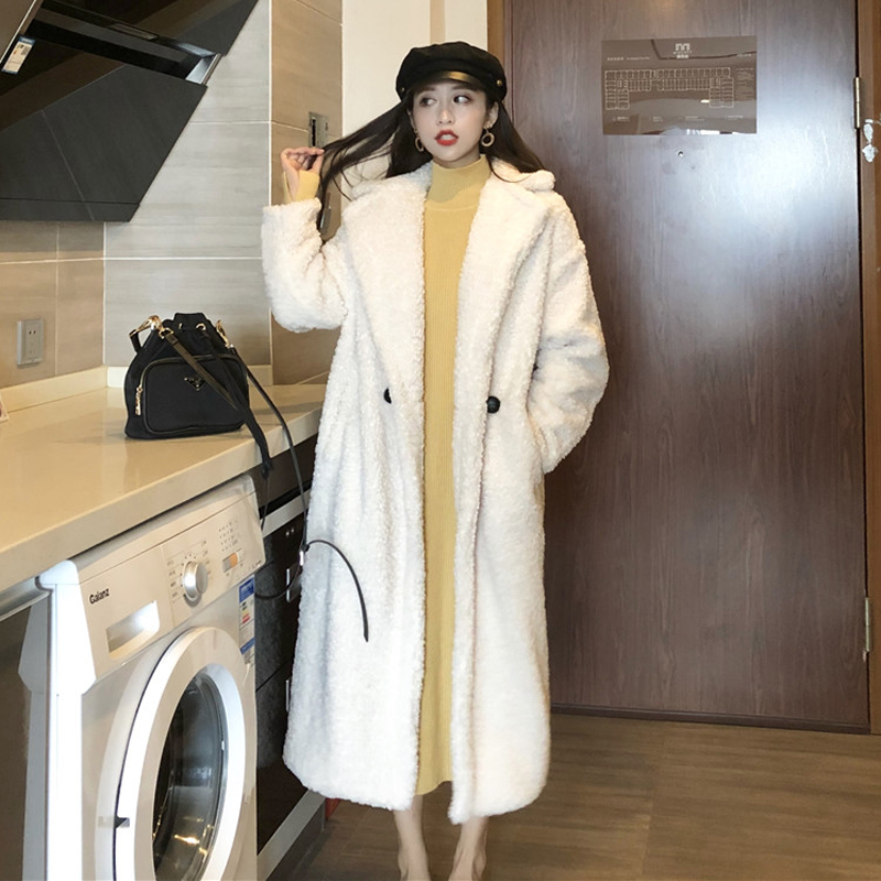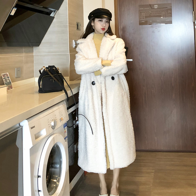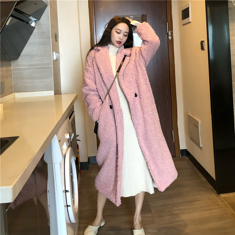 復古溫柔氣質羊羔毛單排扣純色加厚保暖長款毛呢外套女2018新款冬
