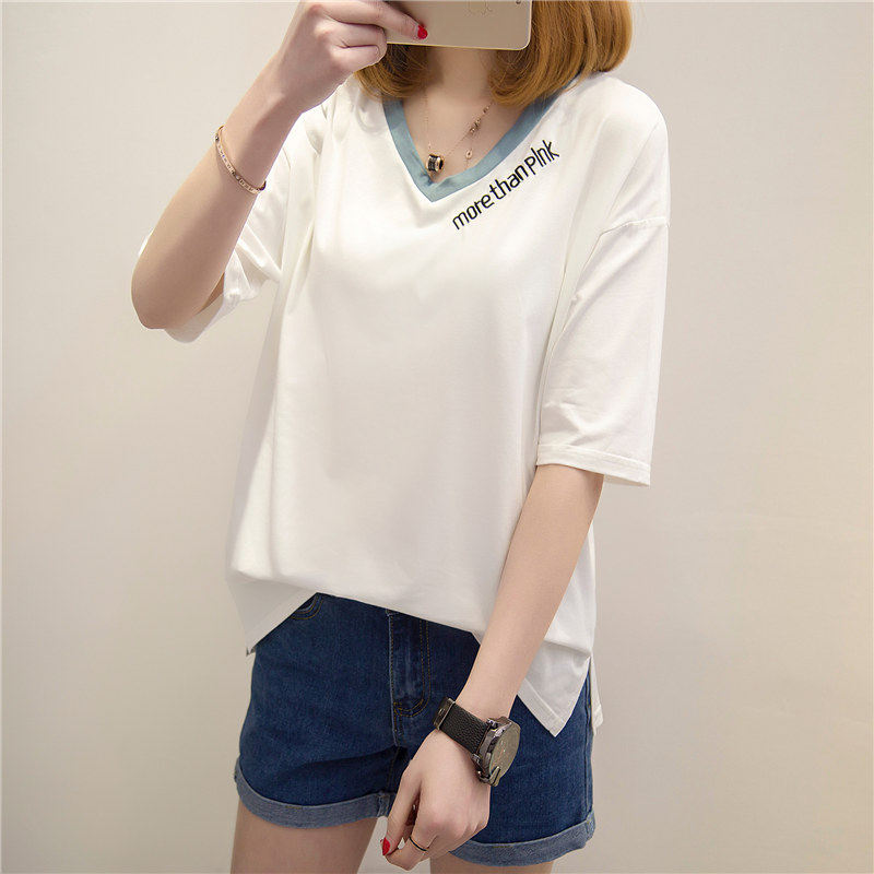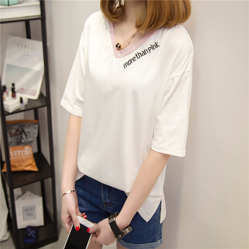 / 女裝V領t恤韓版寬松打底衫純色百搭上衣女夏季新款上衣女t恤