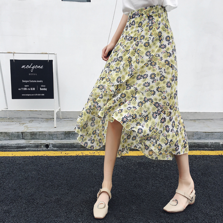 裙擺處的高低不同設計,讓腿部裸露部分不一致,