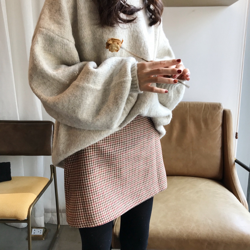 氣質chic千鳥格半身裙女秋冬裝2018新款韓版高腰顯瘦A字裙短裙子