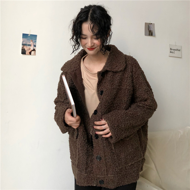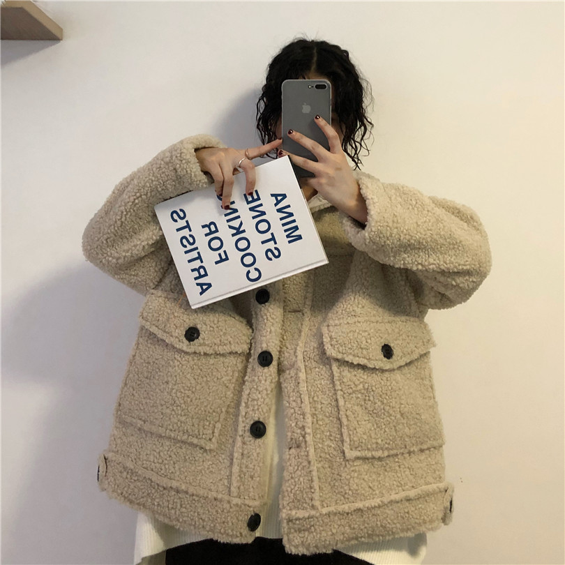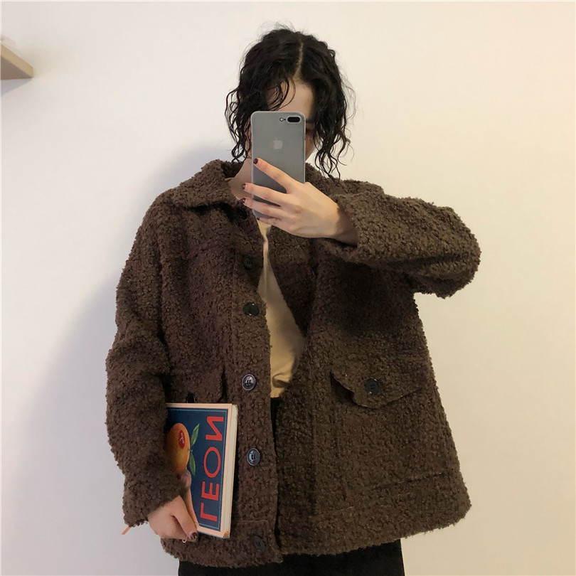 冬季女裝新款韓版BF風寬松加厚雙層復古氣質時尚休閑開衫上衣外套