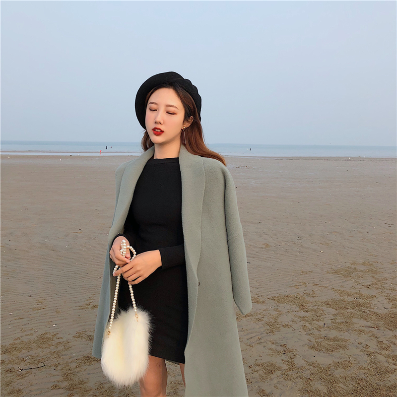 韓國chic風復古寬松含腰帶收腰顯瘦氣質高領懷舊慵懶長袖連衣裙女