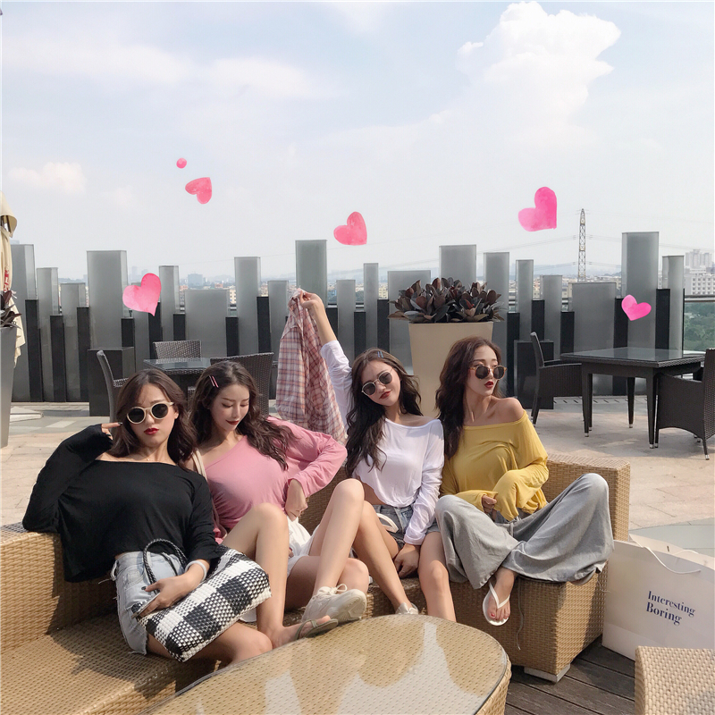 新款韓版港風復古chic顯瘦寬松簡約純色百搭防曬長袖上衣短款t恤