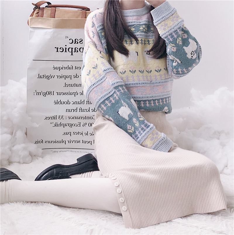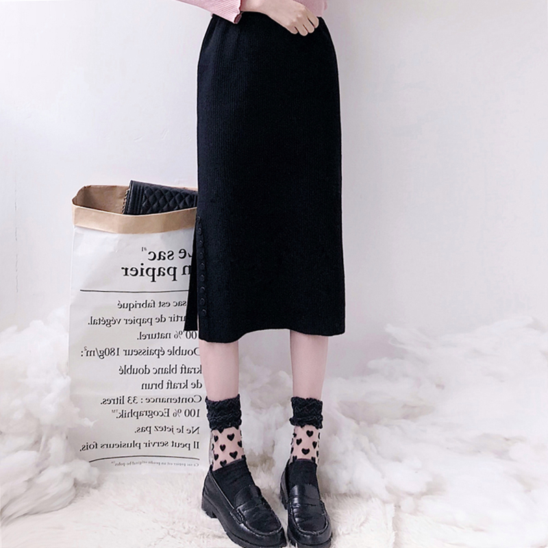/ 秋裝女2018新款韓版黑色顯瘦中長款a字裙氣質高腰針織開叉半身裙