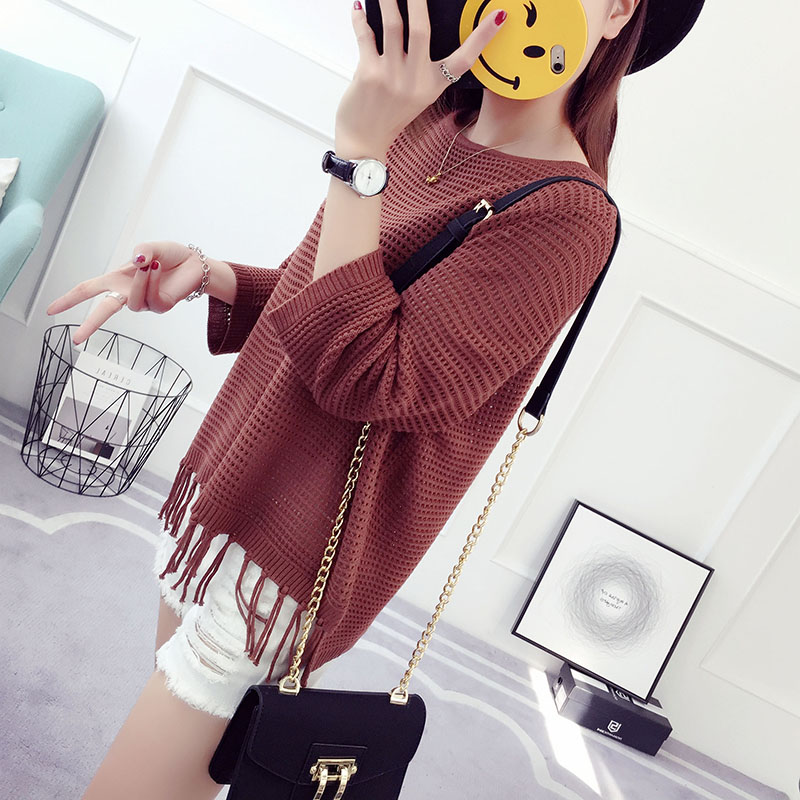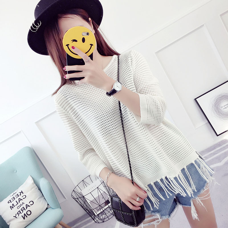 / 毛衣女套頭寬松韓版春秋新款鏤空針織衫打底衫短款薄外套夏季