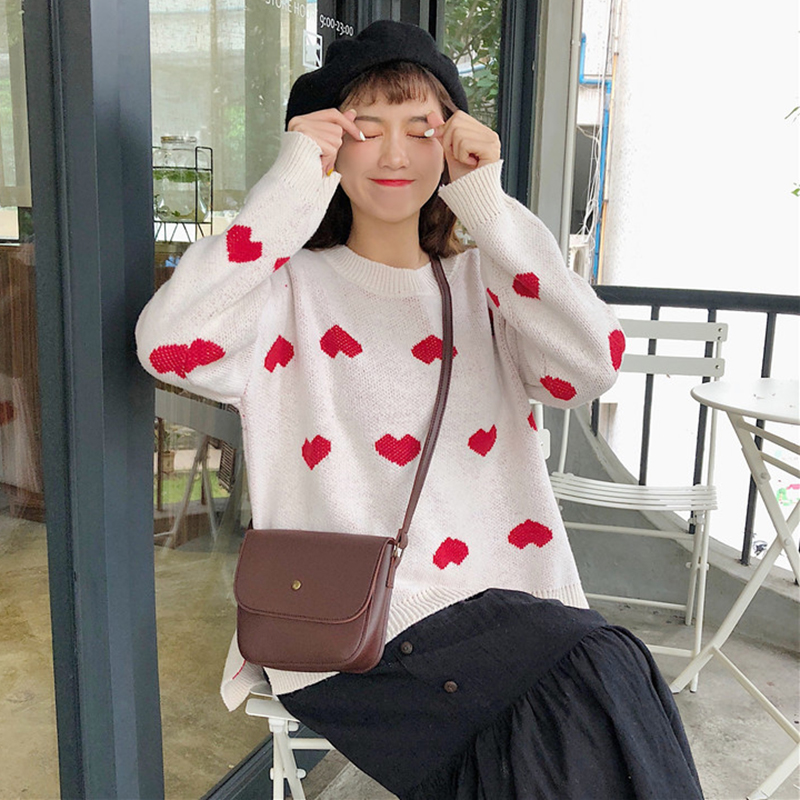 / 慵懶風撞色愛心毛衣外套女秋冬裝2018新款韓版寬松休閑長袖針織衫