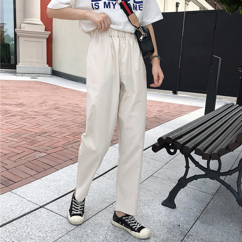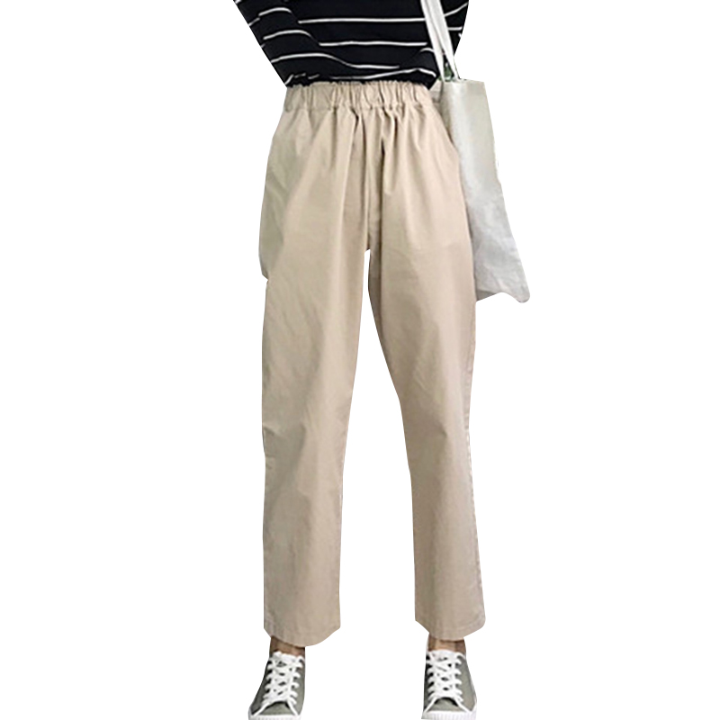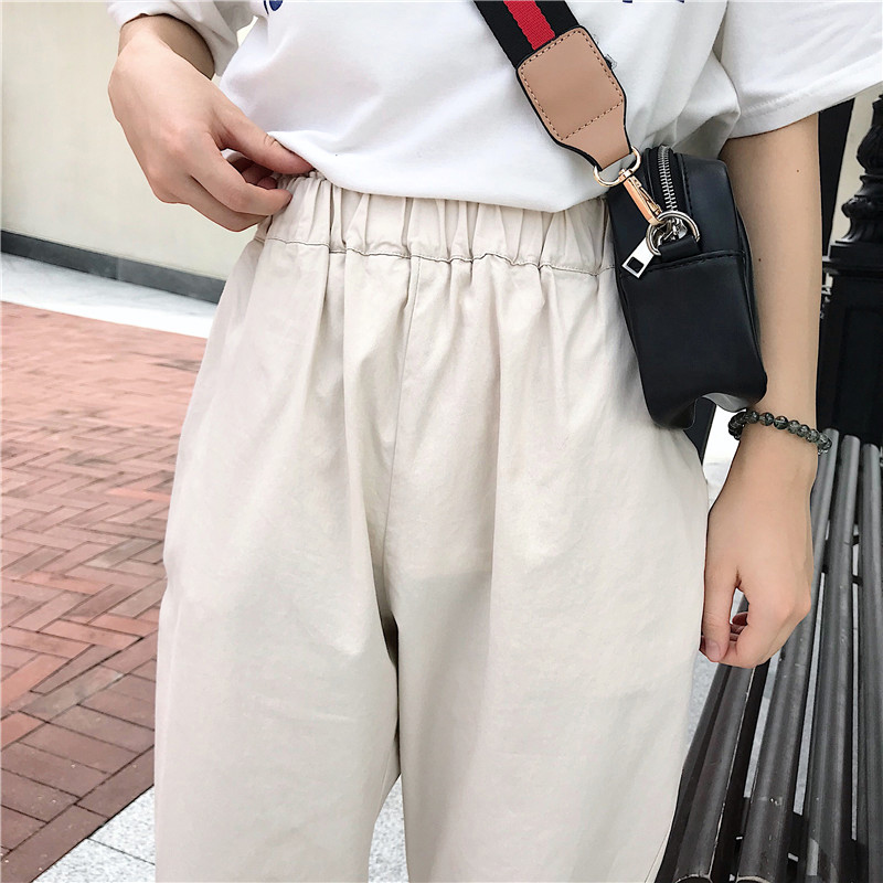 2018早秋韓版松緊腰學生休閑褲寬松復古工裝直筒休閑九分闊腿褲女