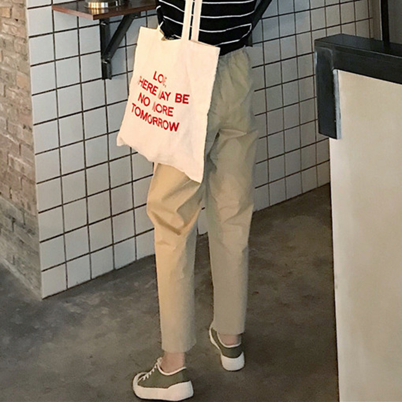 / 2018早秋韓版松緊腰學生休閑褲寬松復古工裝直筒休閑九分闊腿褲女